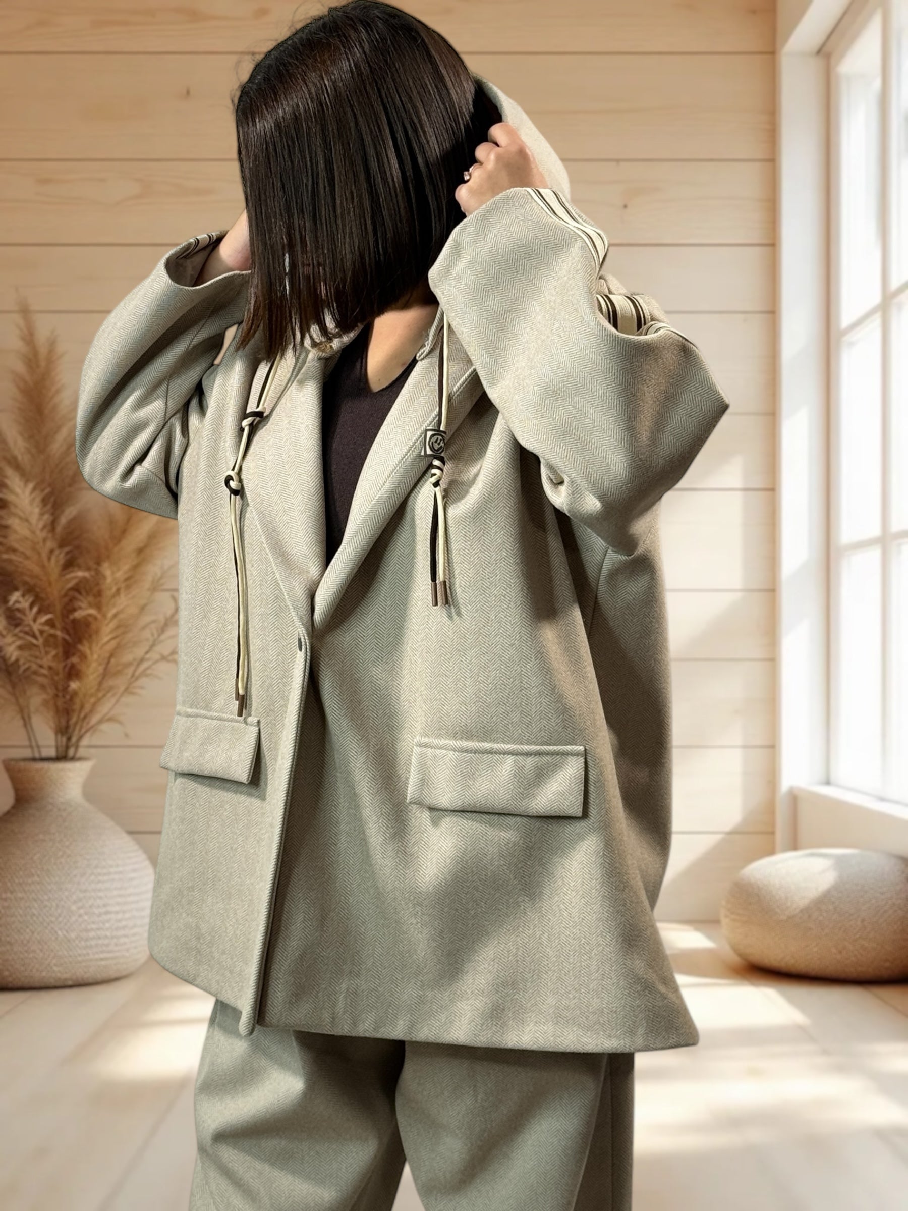 ALEXANDRA - VESTE BEIGE AVEC CAPUCHE JUSQU'A LA TAILLE 52/54