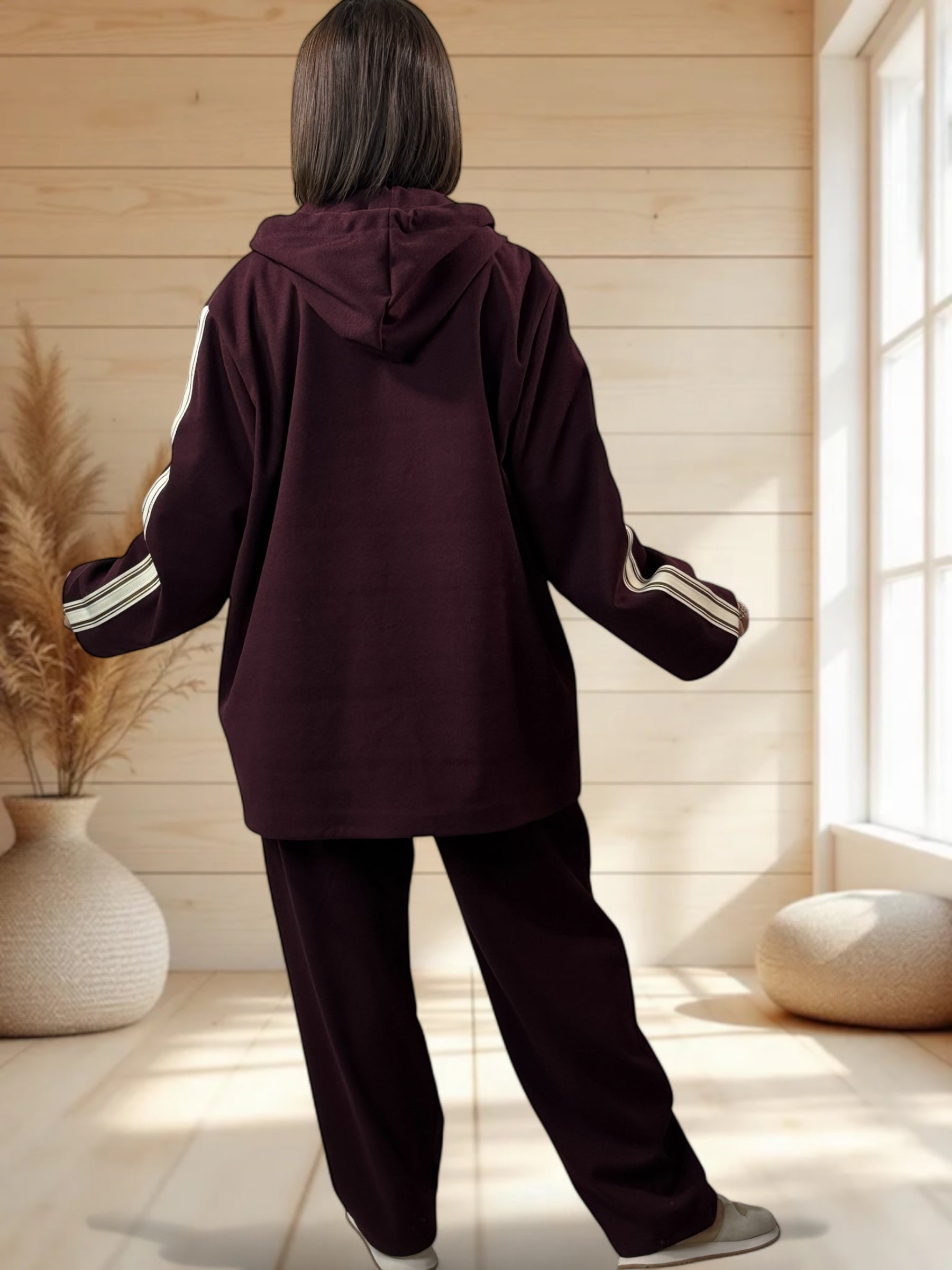 ALEXANDRA - VESTE BORDEAUX AVEC CAPUCHE JUSQU'A LA TAILLE 52/54