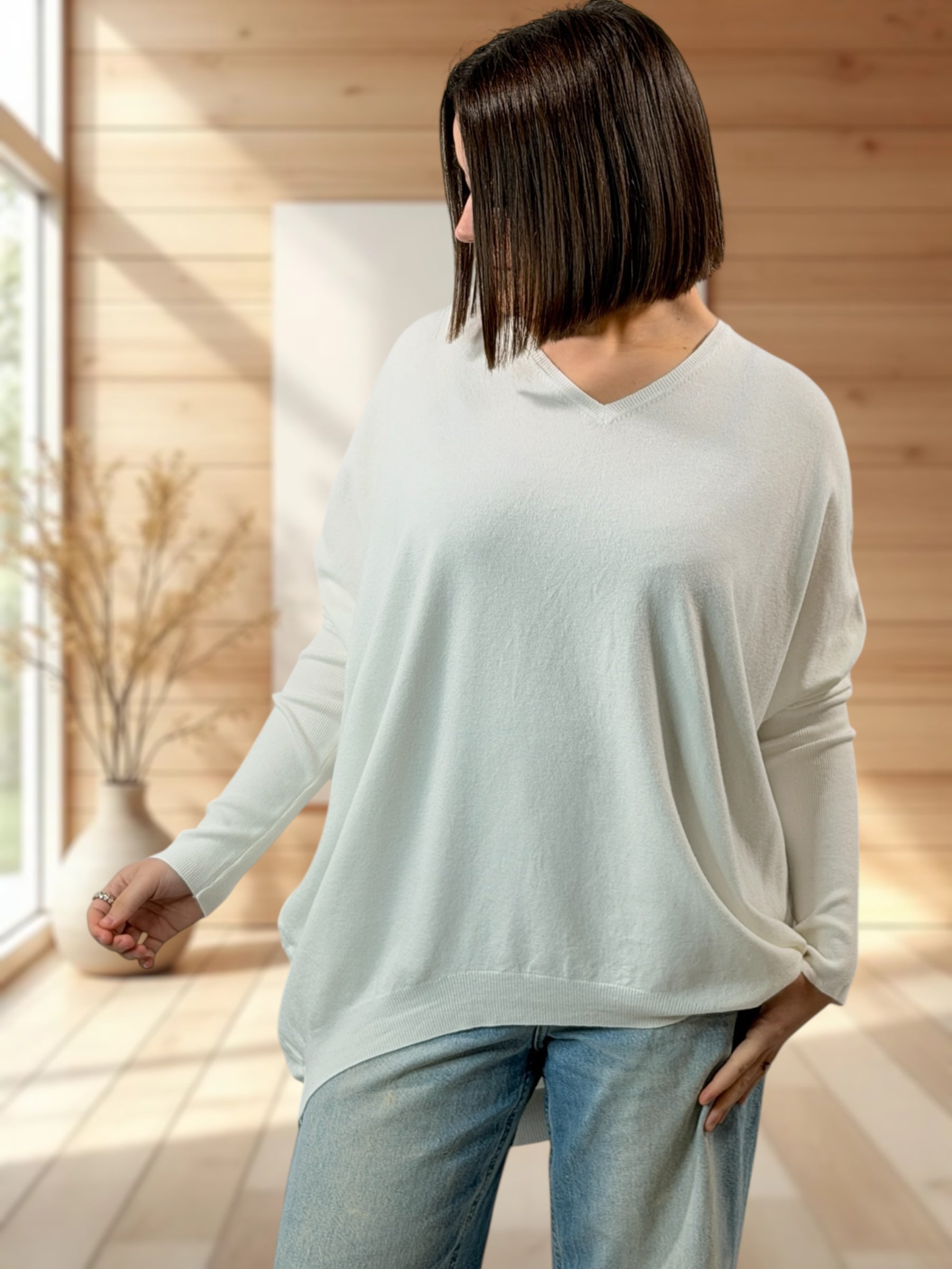 ANAIS - PULL BLANC NOEUD EN STRASS DANS LE DOS JUSQU'A LA TAILLE 52/54