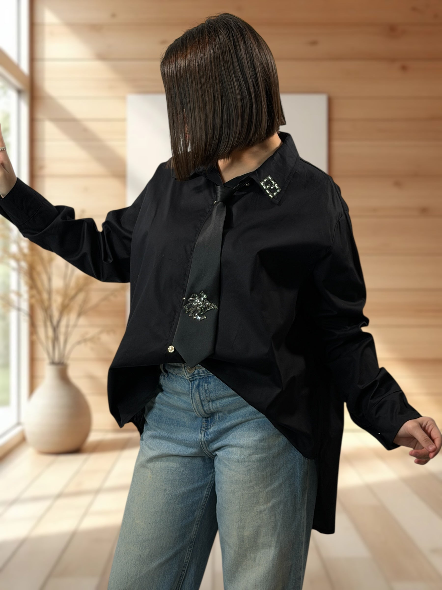ANGIE - CHEMISE NOIRE AVEC CRAVATE JUSQU'A LA TAILLE 52