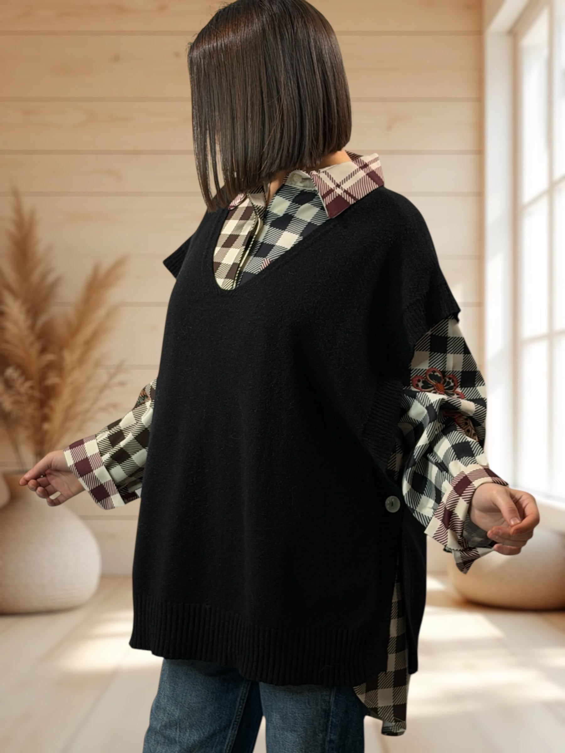 AURELIE - PULL NOIR SANS MANCHES JUSQU'A LA TAILLE 52
