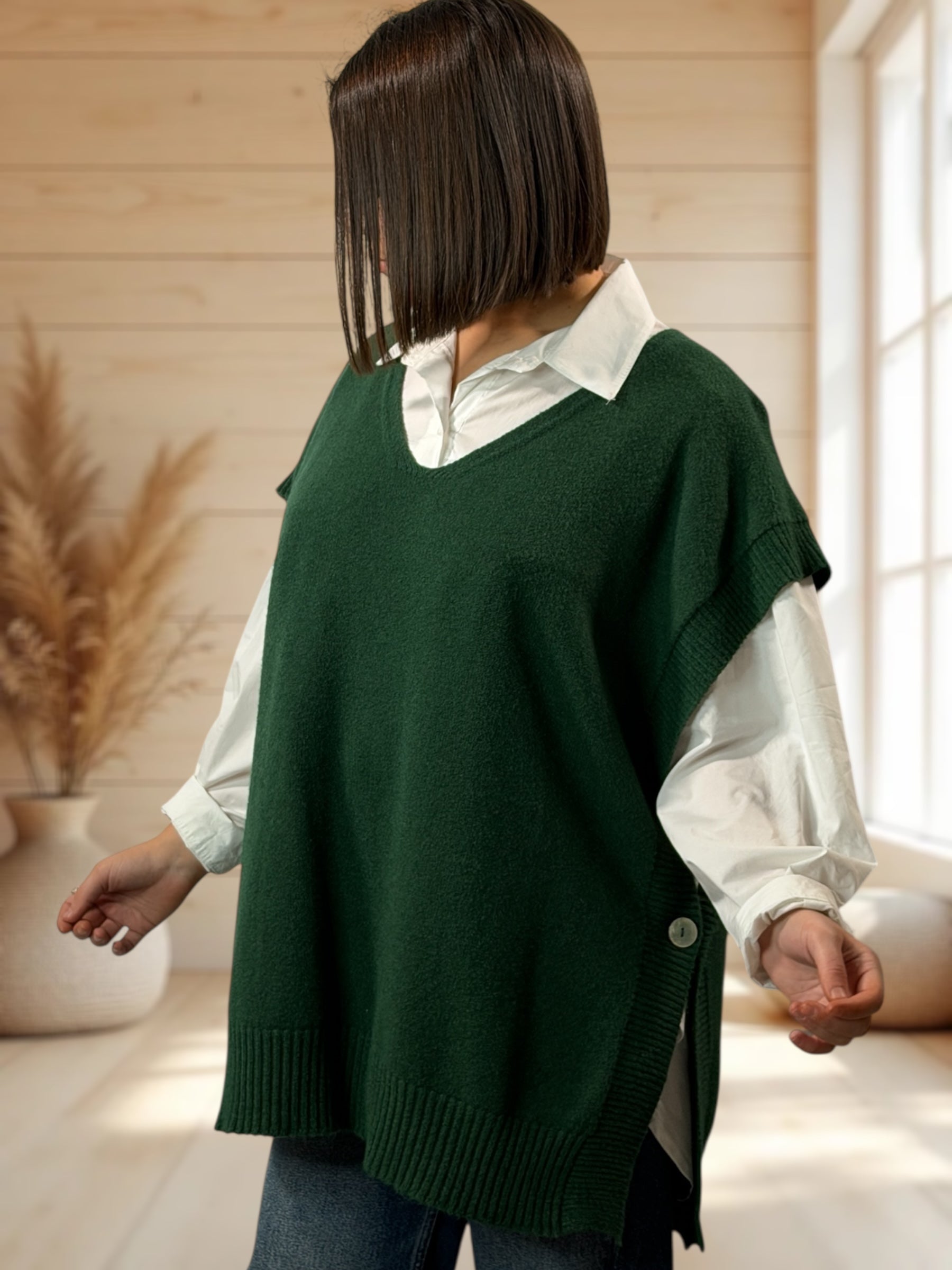 AURELIE - PULL VERT BOUTEILLE SANS MANCHES JUSQU'A LA TAILLE 52