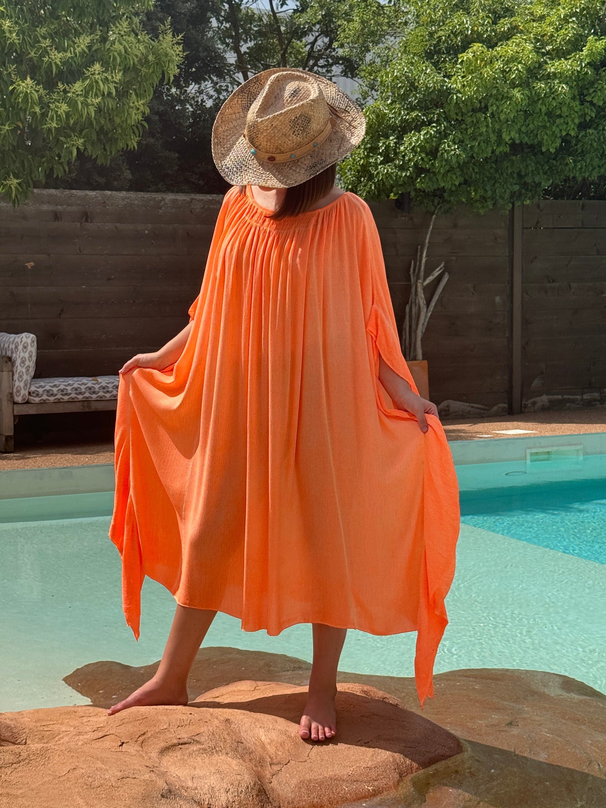 AXELLE - ROBE FLUIDE OVERSIZE ORANGE JUSQU'A LA TAILLE 58
