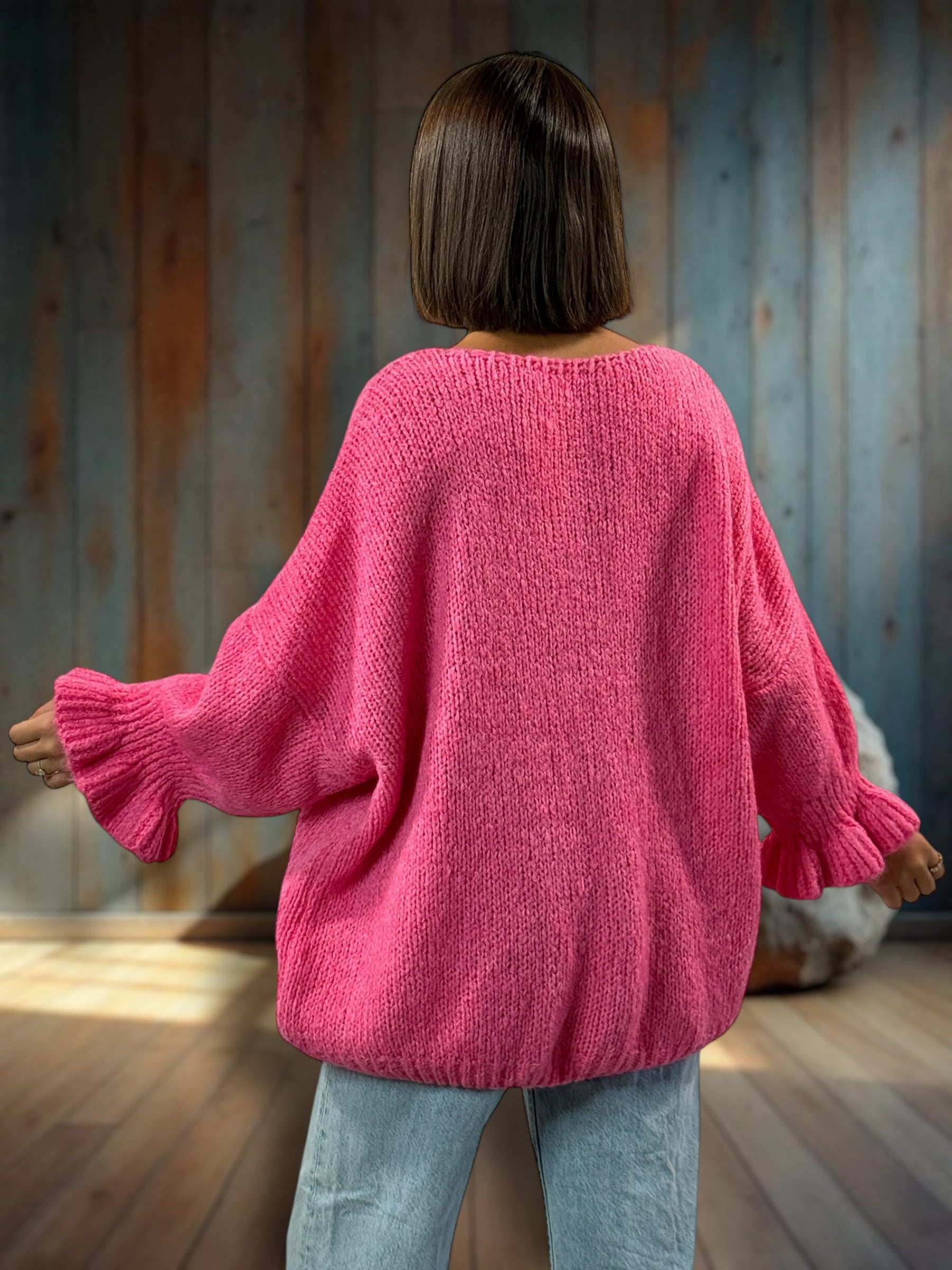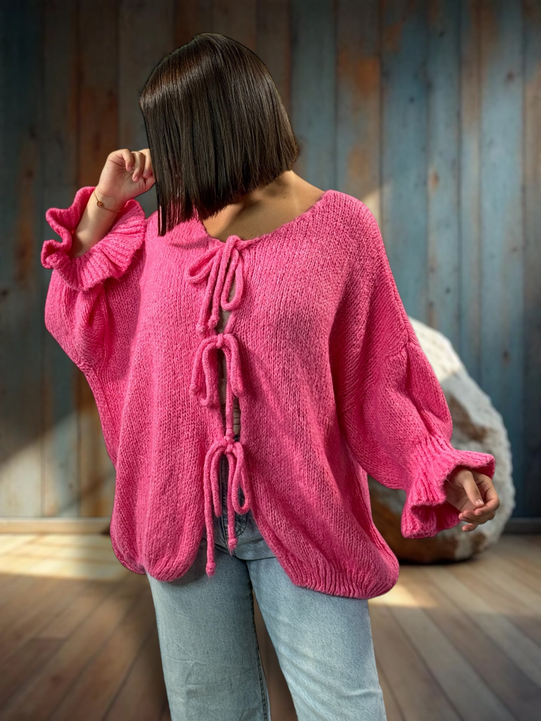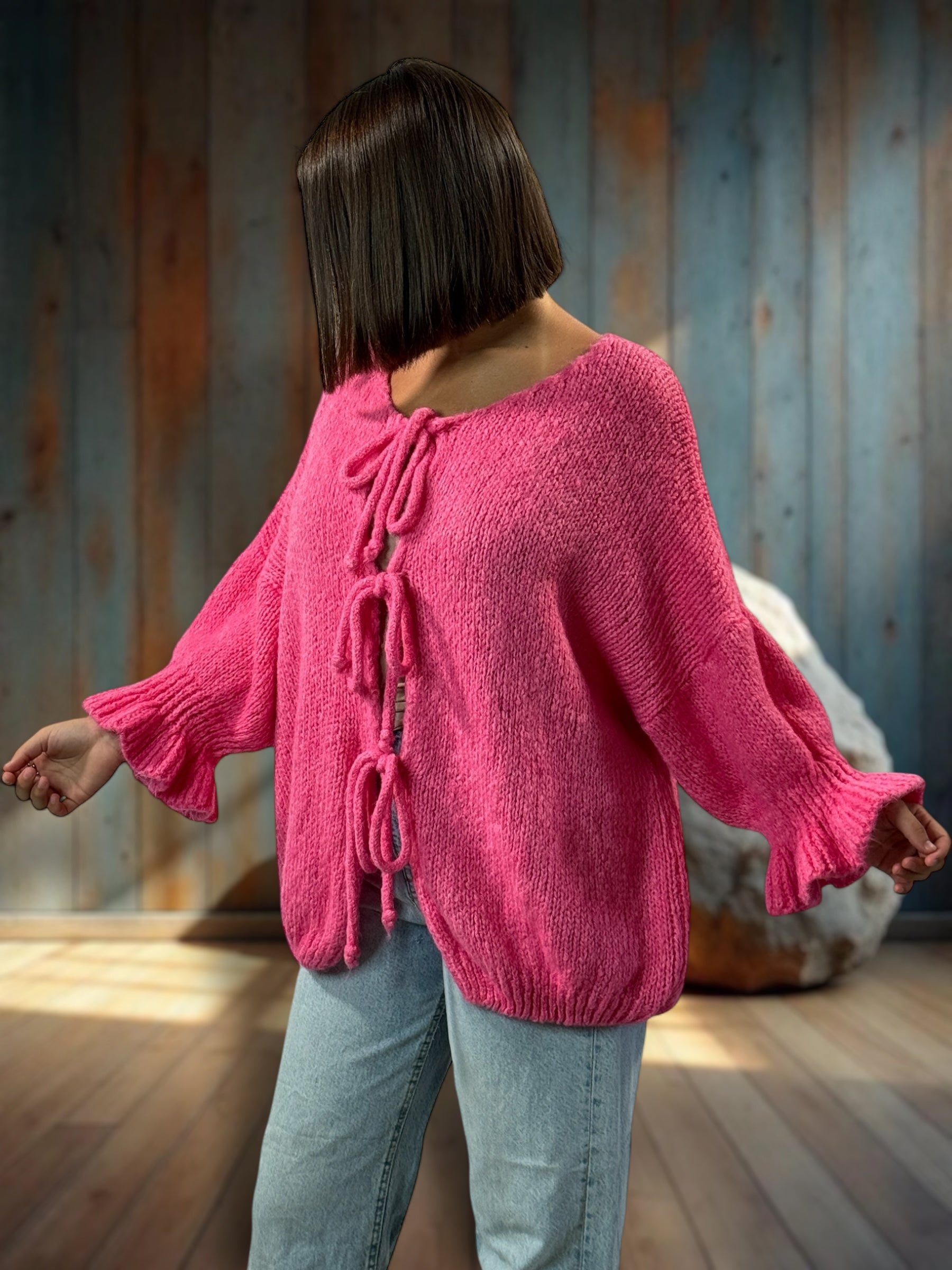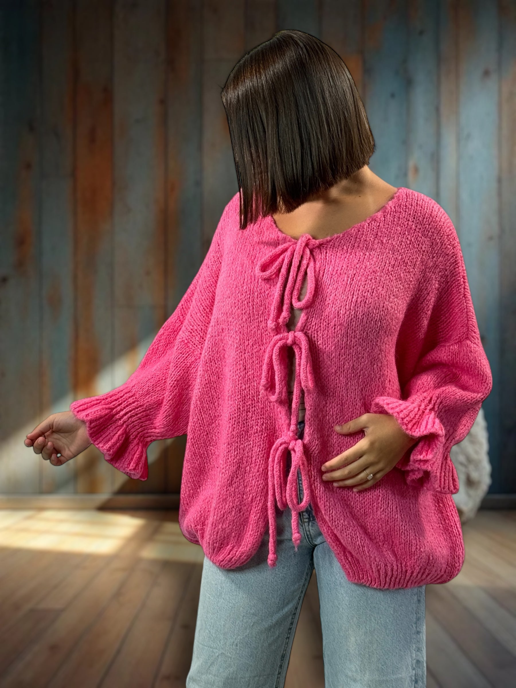 BERENGERE - GILET OVERSIZE ROSE AVEC NOEUDS JUSQU'A LA TAILLE 52/54