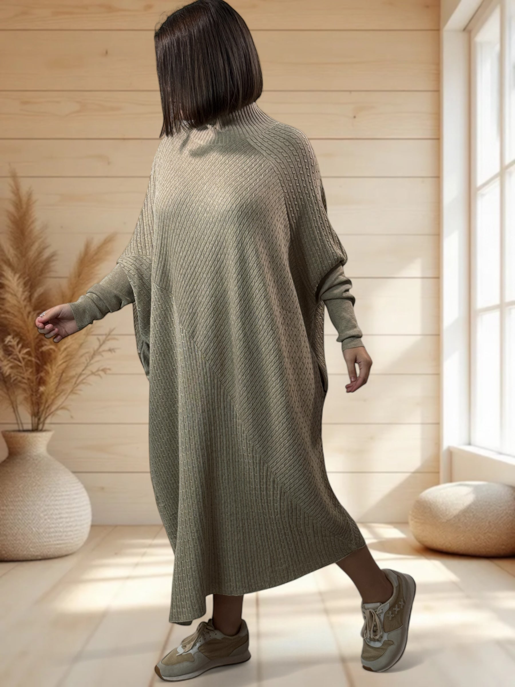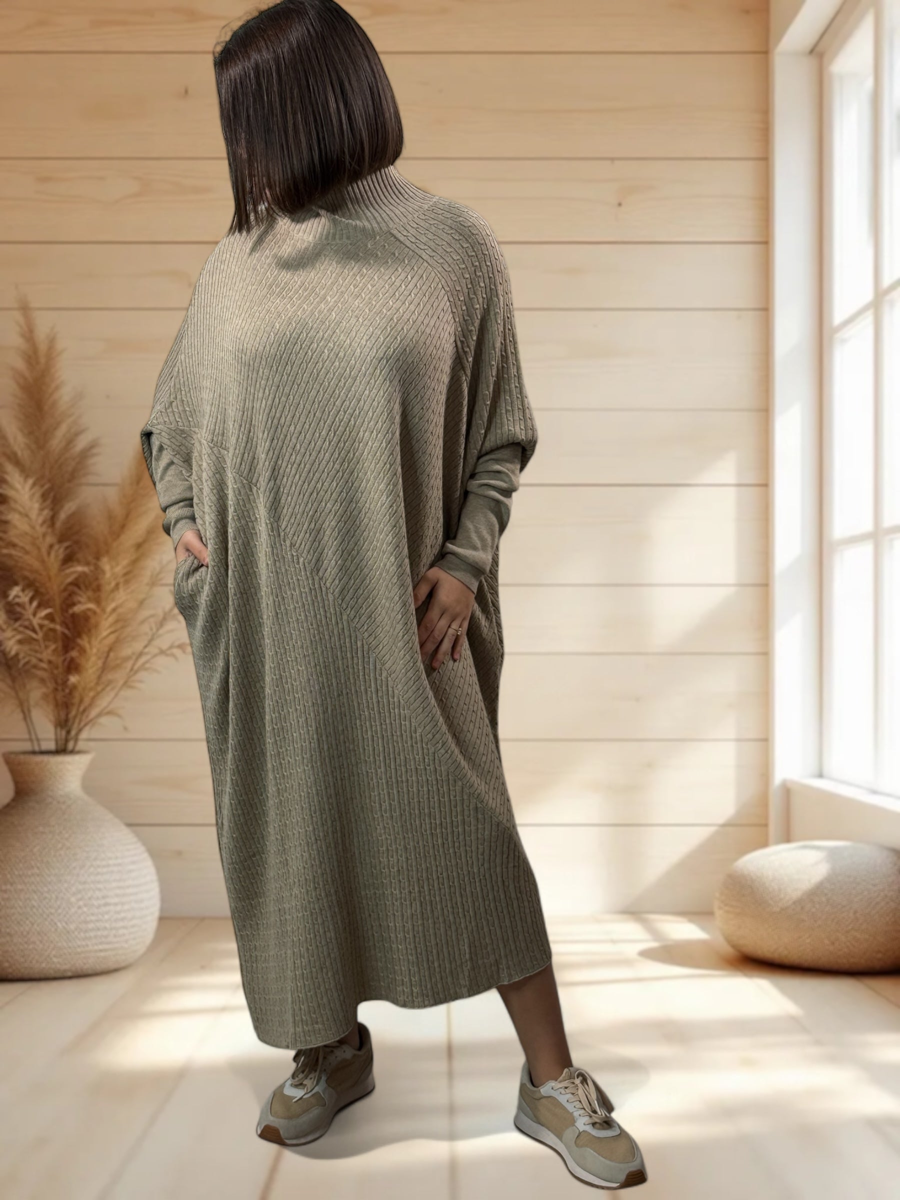 BETTINA - ROBE BEIGE OVERSIZE EN MAILLE JUSQU'A LA TAILLE 56