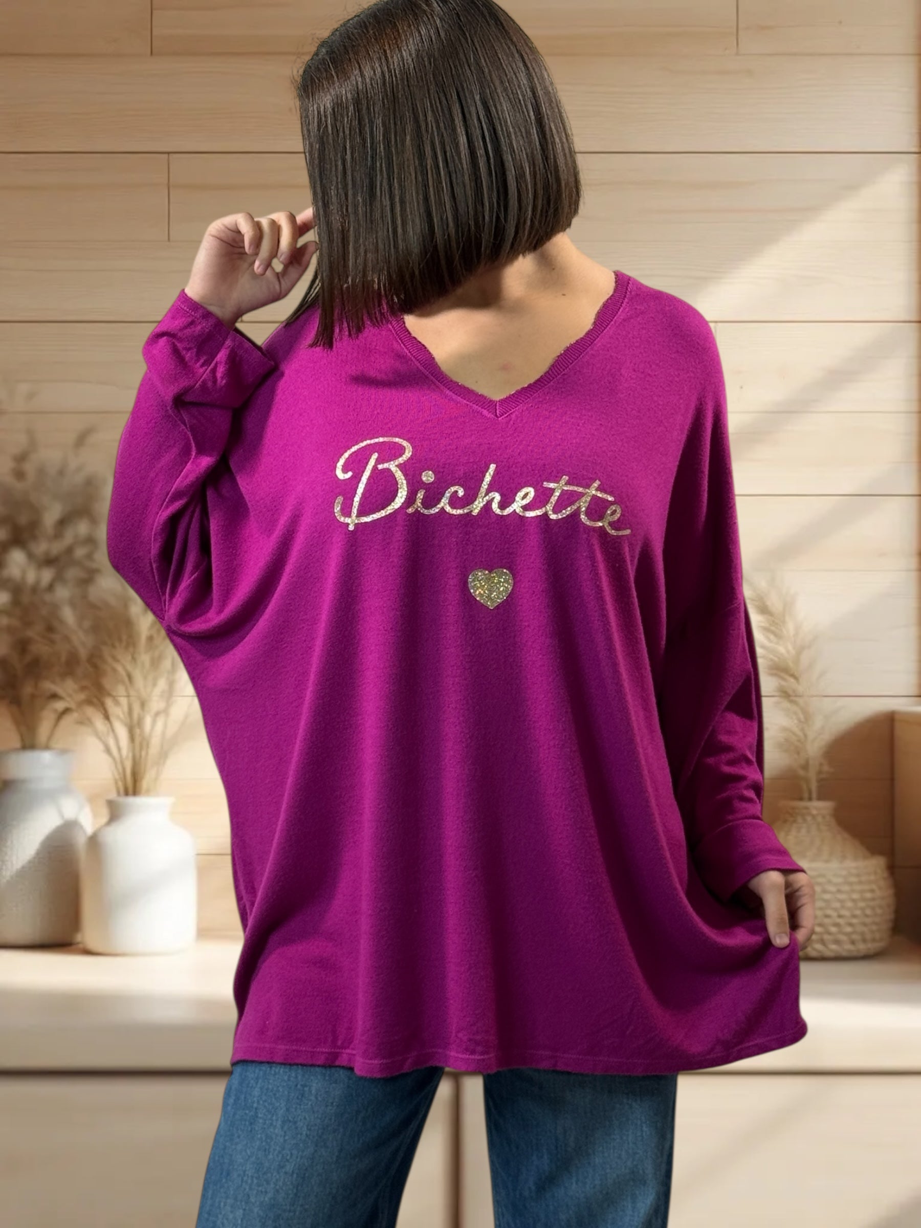 BICHETTE - PULL CYCLAMEN EN MAILLE FLUIDE JUSQU'A LA TAILLE 54/56