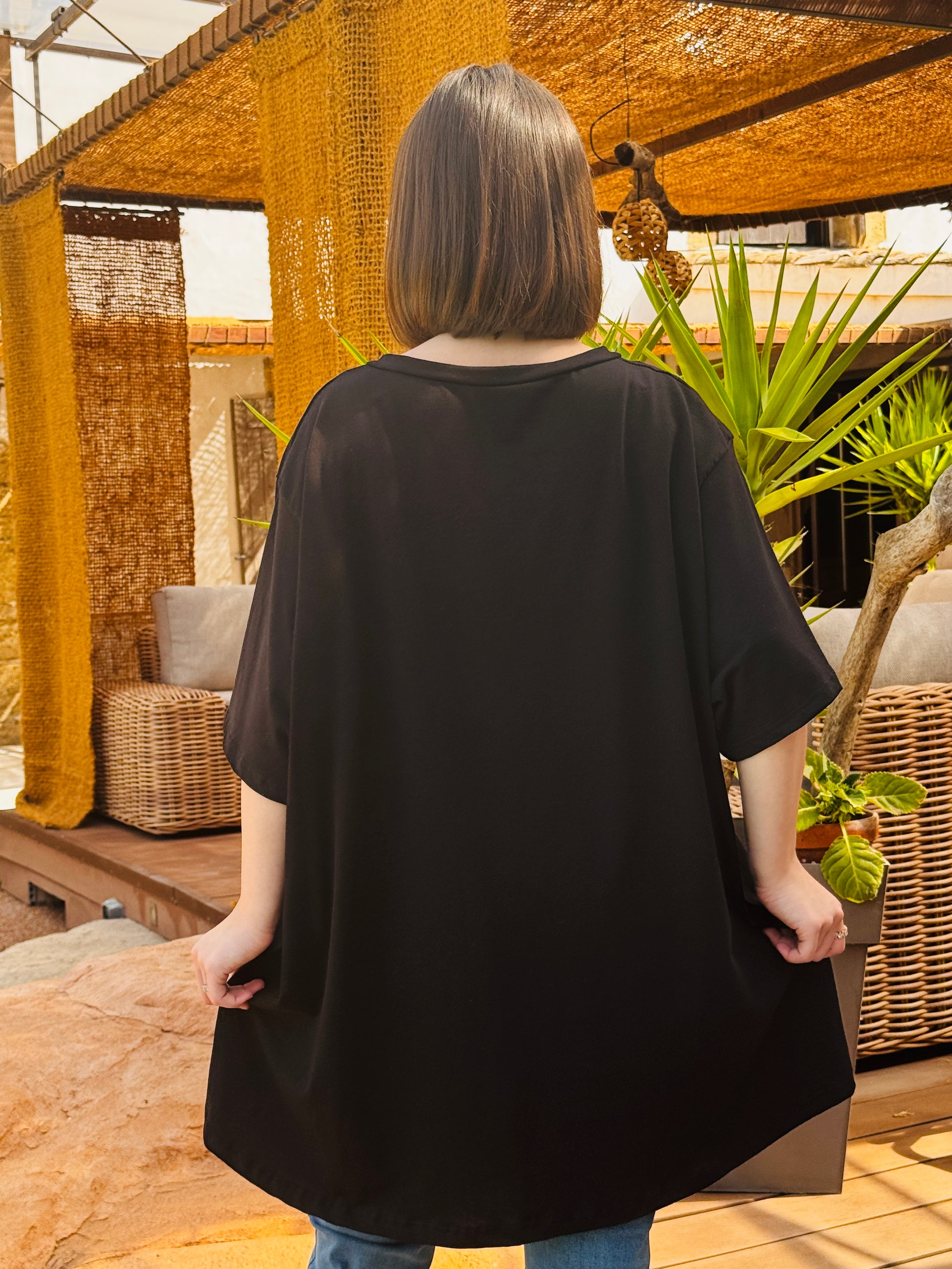 BILLIE - T-SHIRT NOIR EN VISCOSE MOTIF PEACE & LOVE JUSQU'A LA TAILLE 56/58