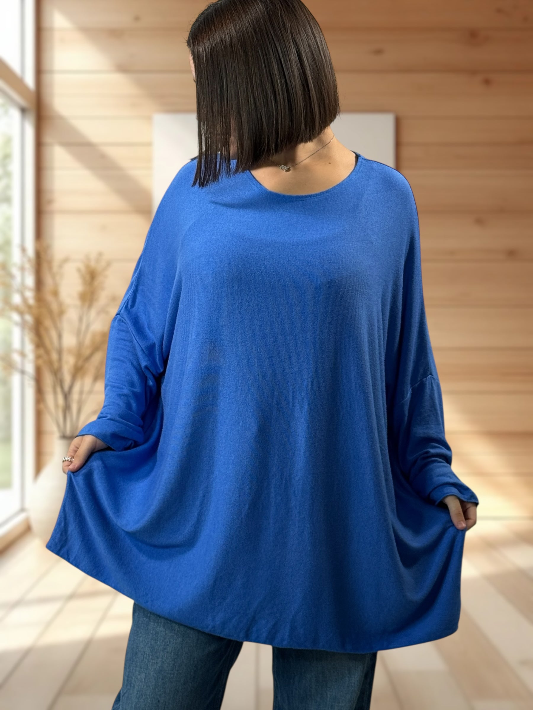 CAPRIO - PULL BLEU EN MAILLE FLUIDE JUSQU'A LA TAILLE 54