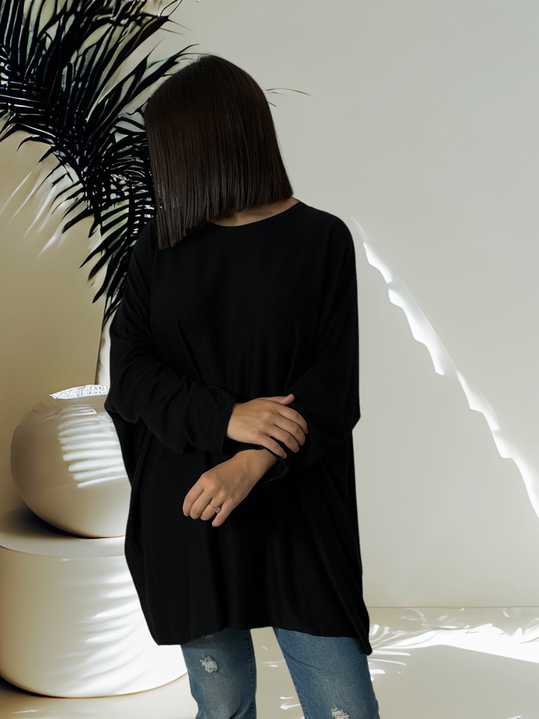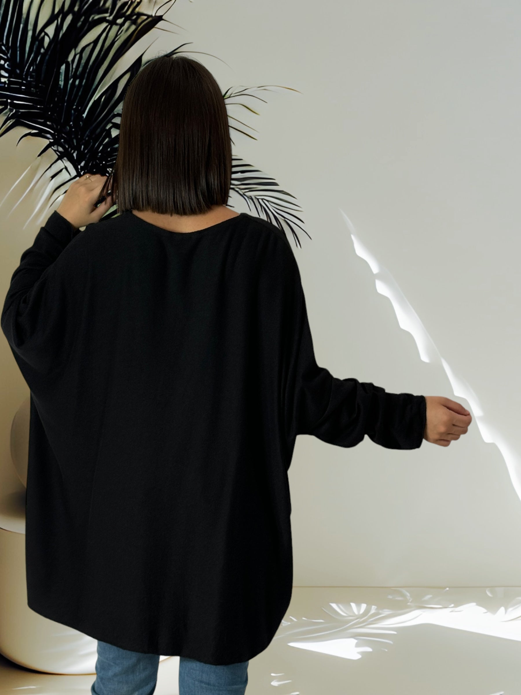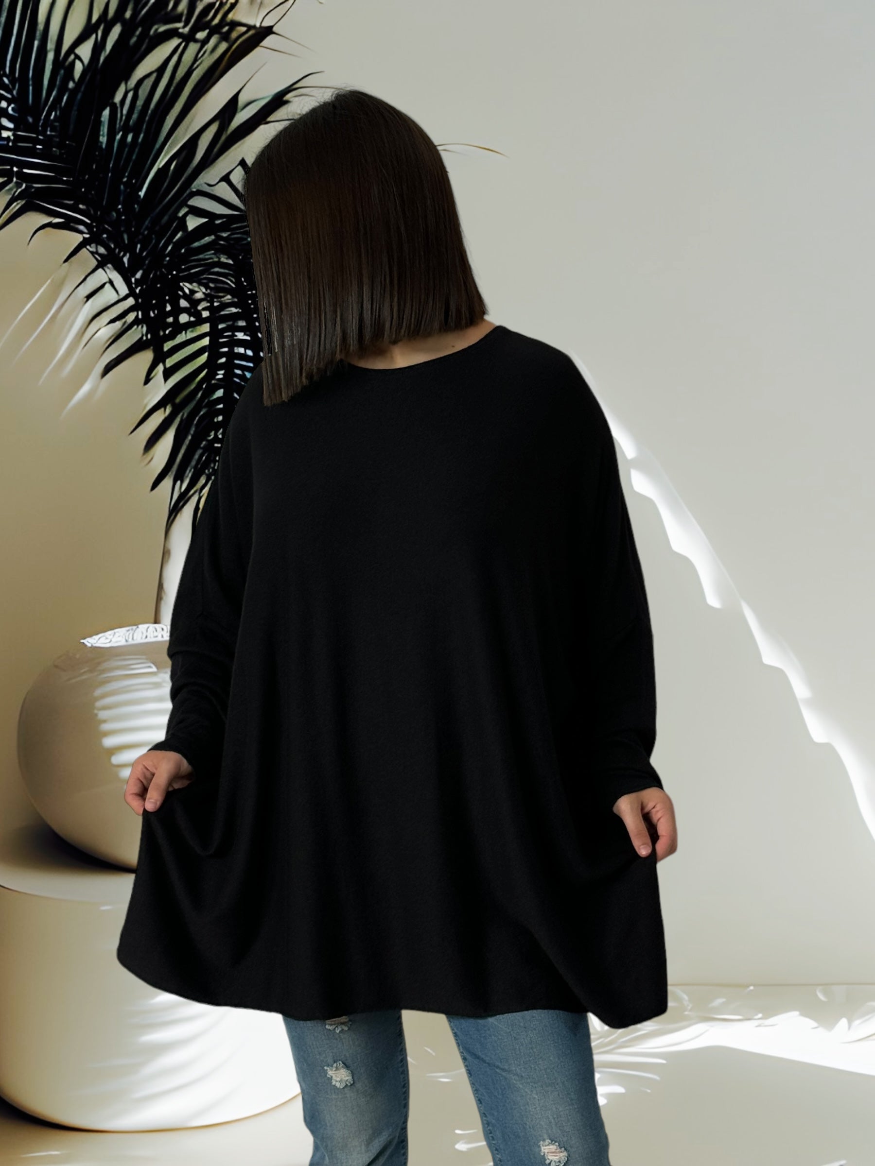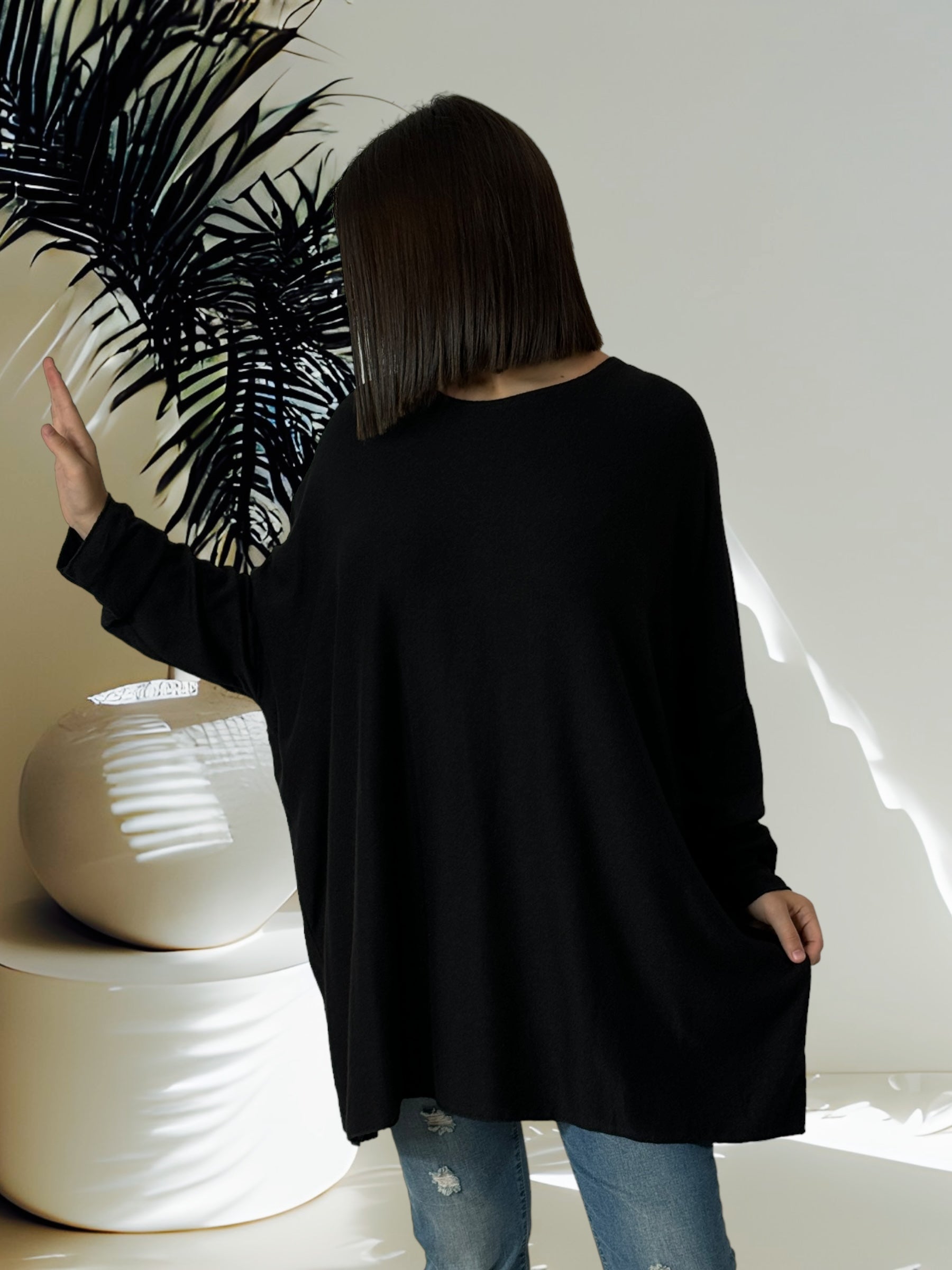 CAPRIO - PULL NOIR EN MAILLE FLUIDE JUSQU'A LA TAILLE 54