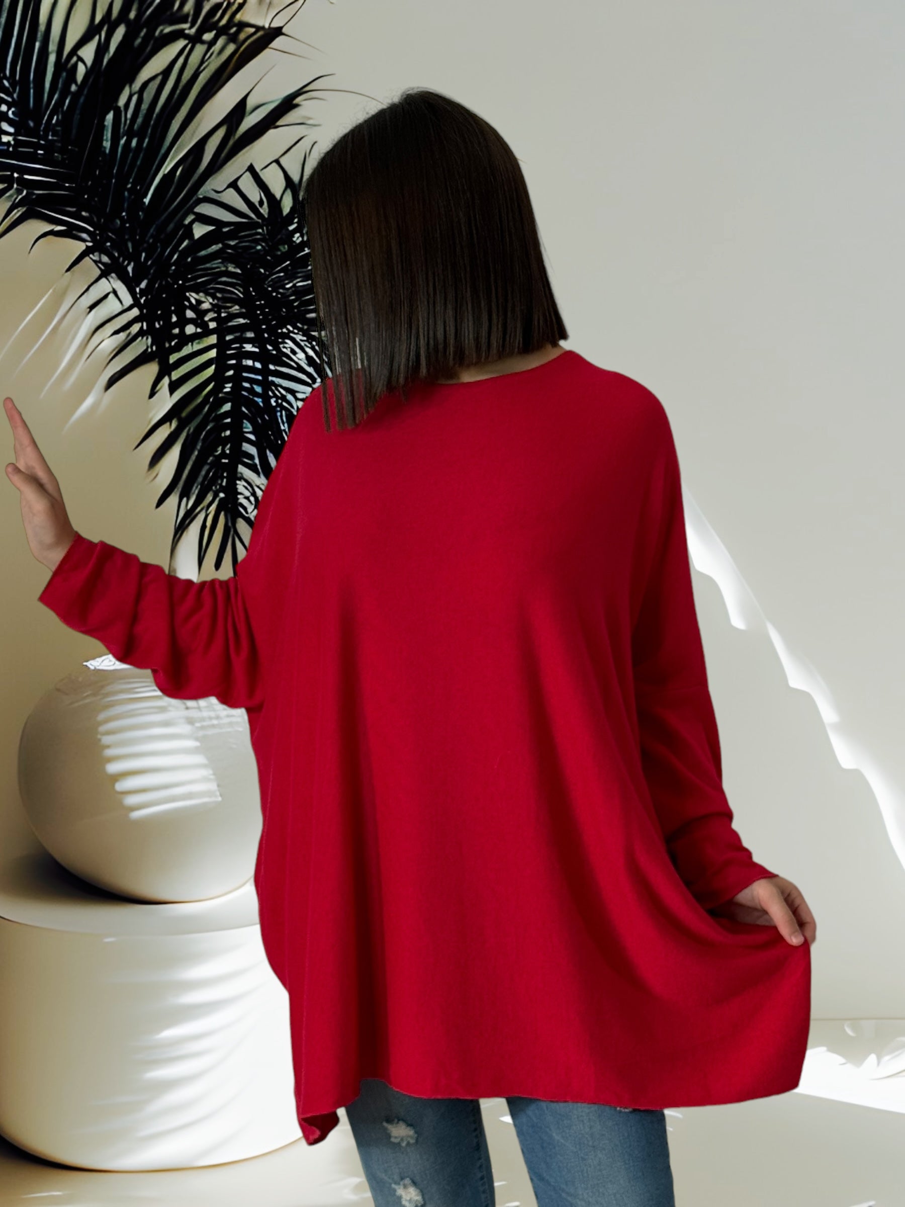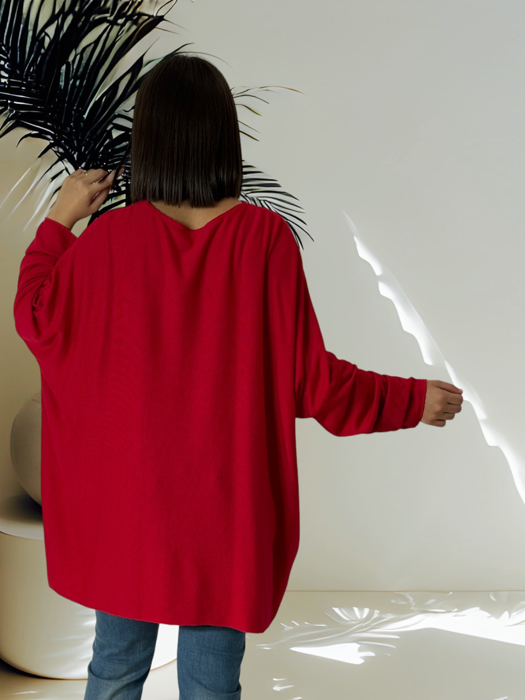 CAPRIO - PULL ROUGE EN MAILLE FLUIDE JUSQU'A LA TAILLE 54