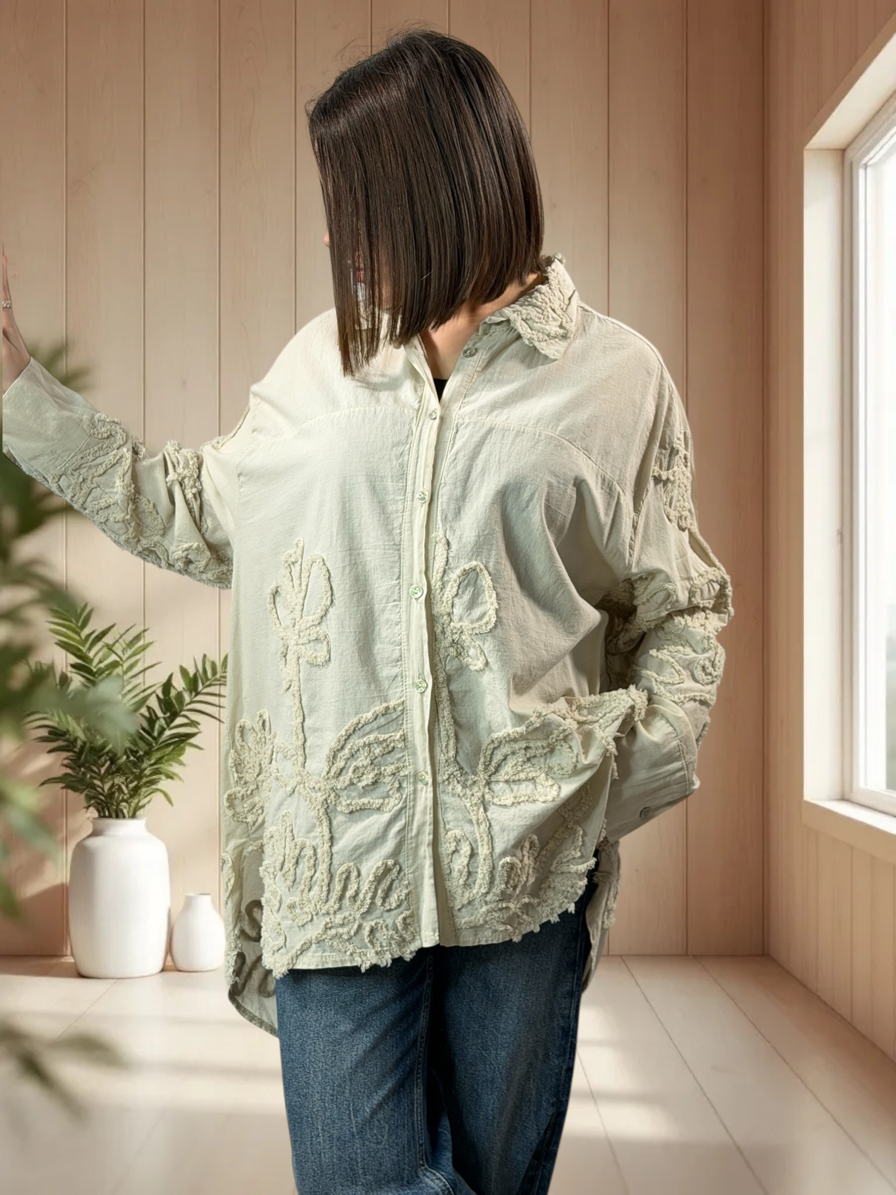 CAROLA - CHEMISE OVERSIZE BEIGE JUSQU'A LA TAILLE 50/52