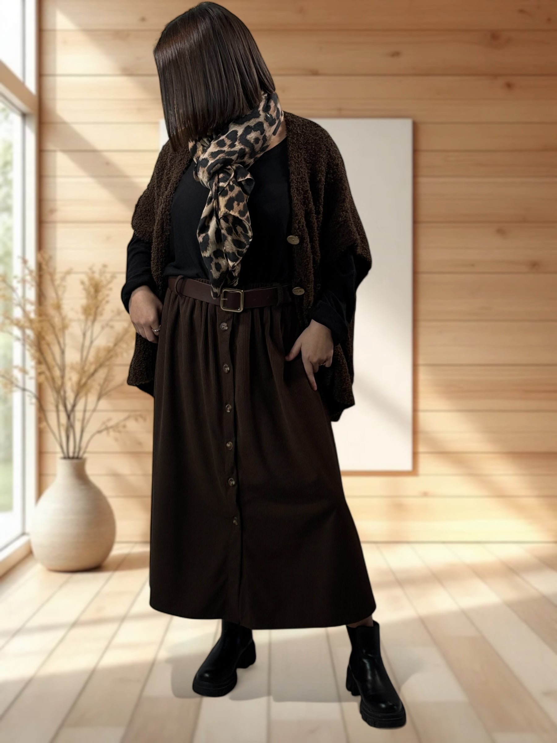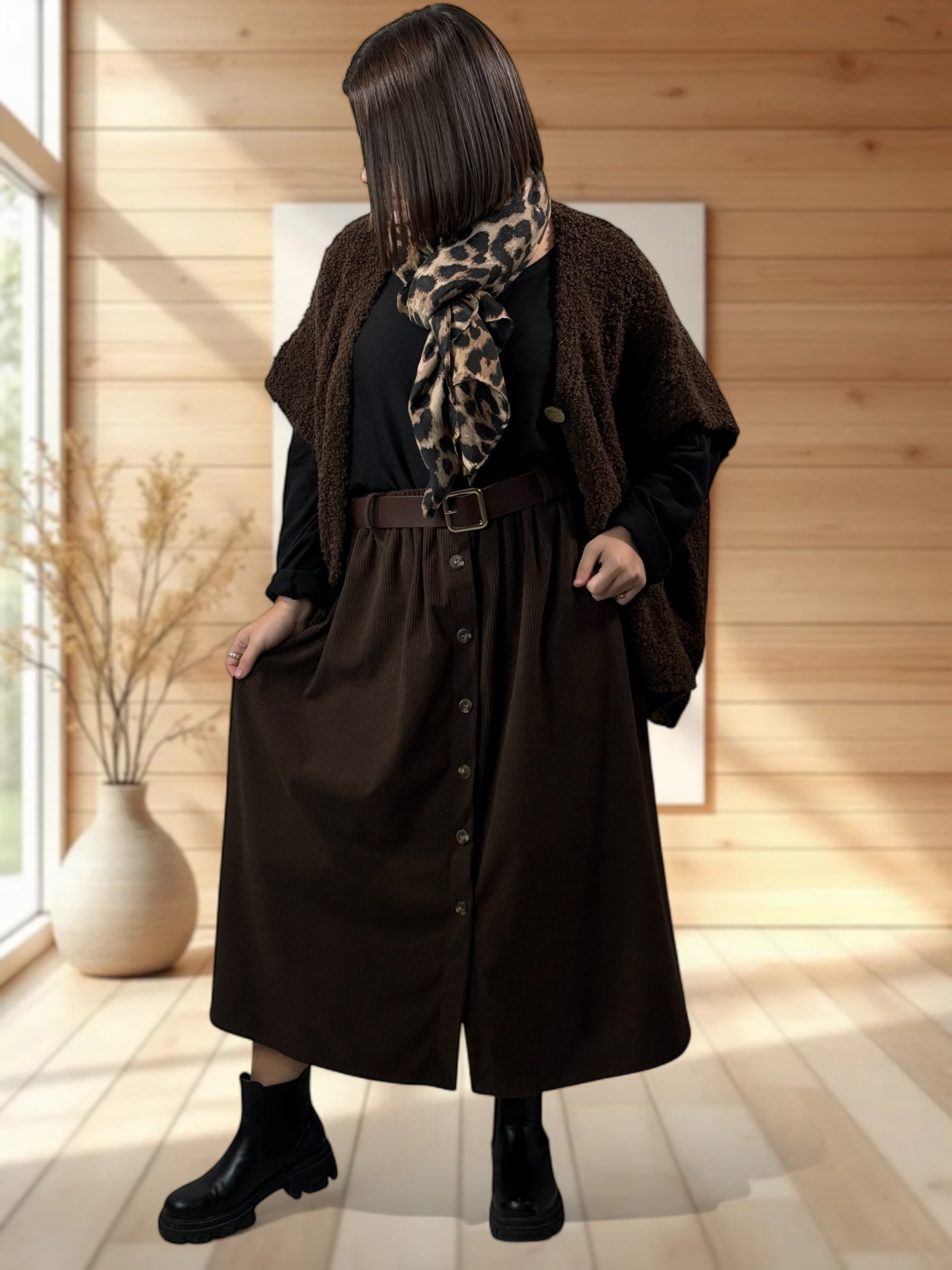 CAROLINA - JUPE EN VELOURS MARRON JUSQU'A LA TAILLE 52/54