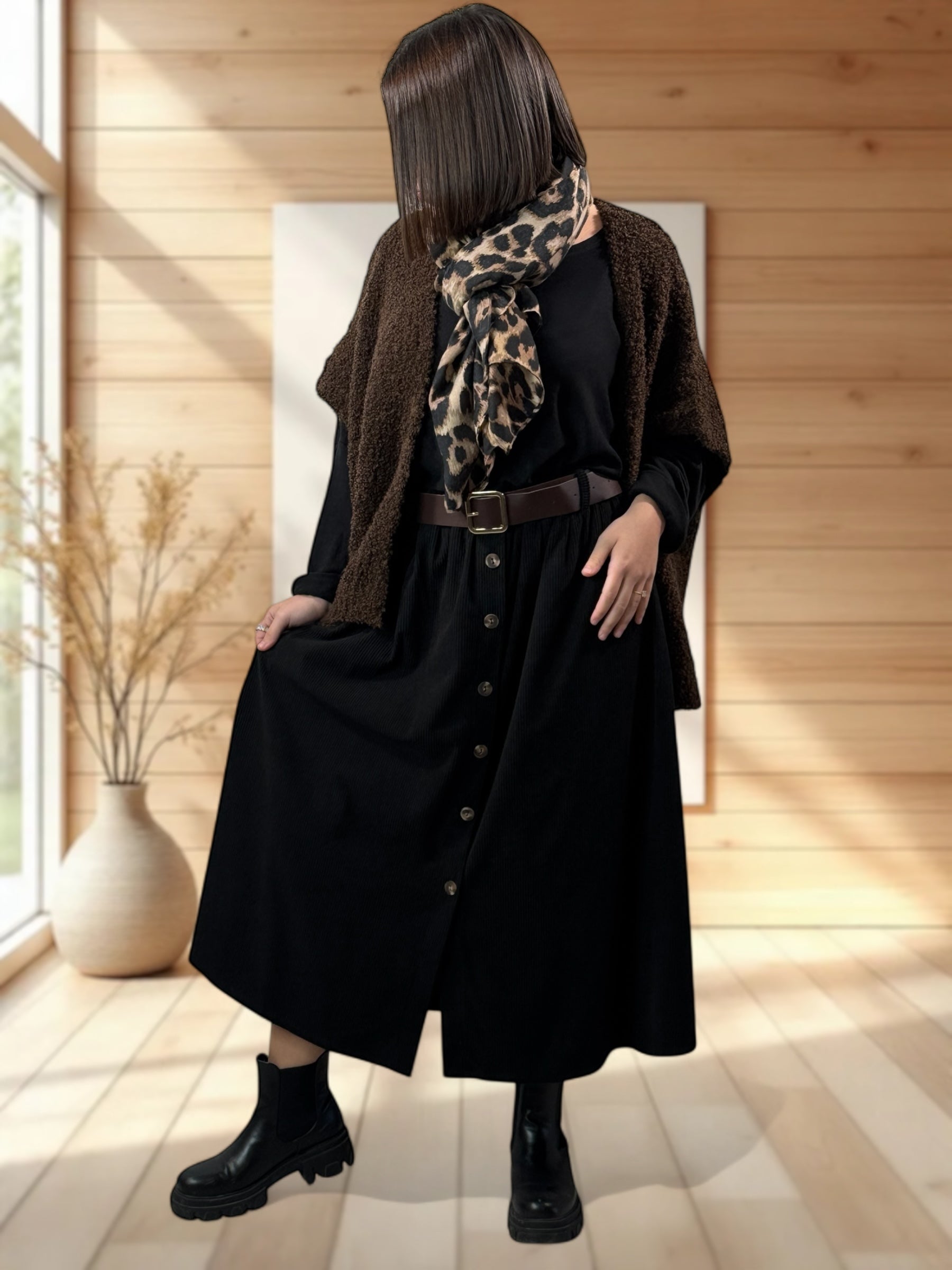 CAROLINA - JUPE EN VELOURS NOIR JUSQU'A LA TAILLE 52/54