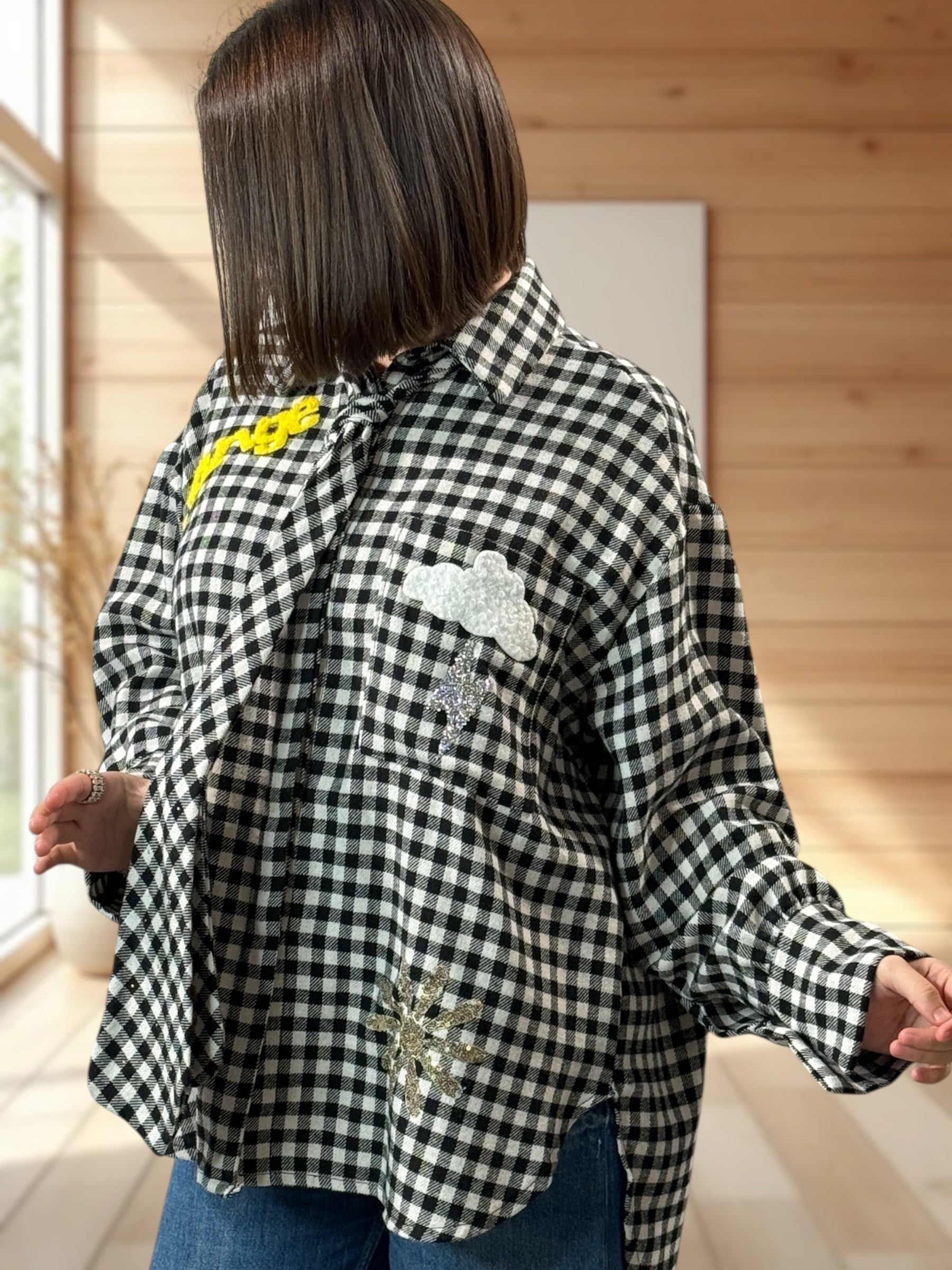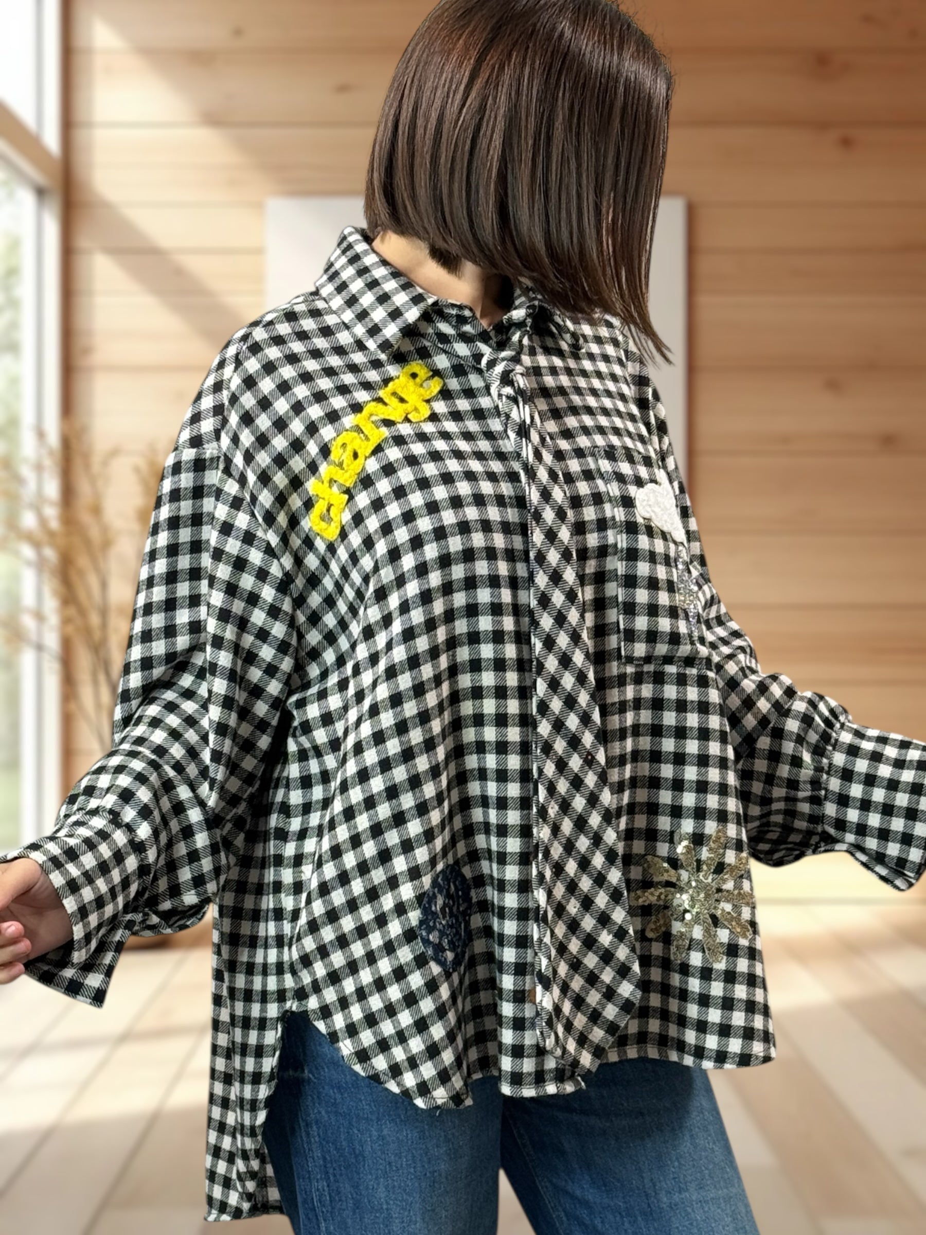Osez le style audacieux avec notre chemise oversize CECILIA ! elle vous transportera dans un monde artistique et avant-gardiste. Taille jusqu'à 52 pour un confort maximal. Faites un pas vers l'aventure!