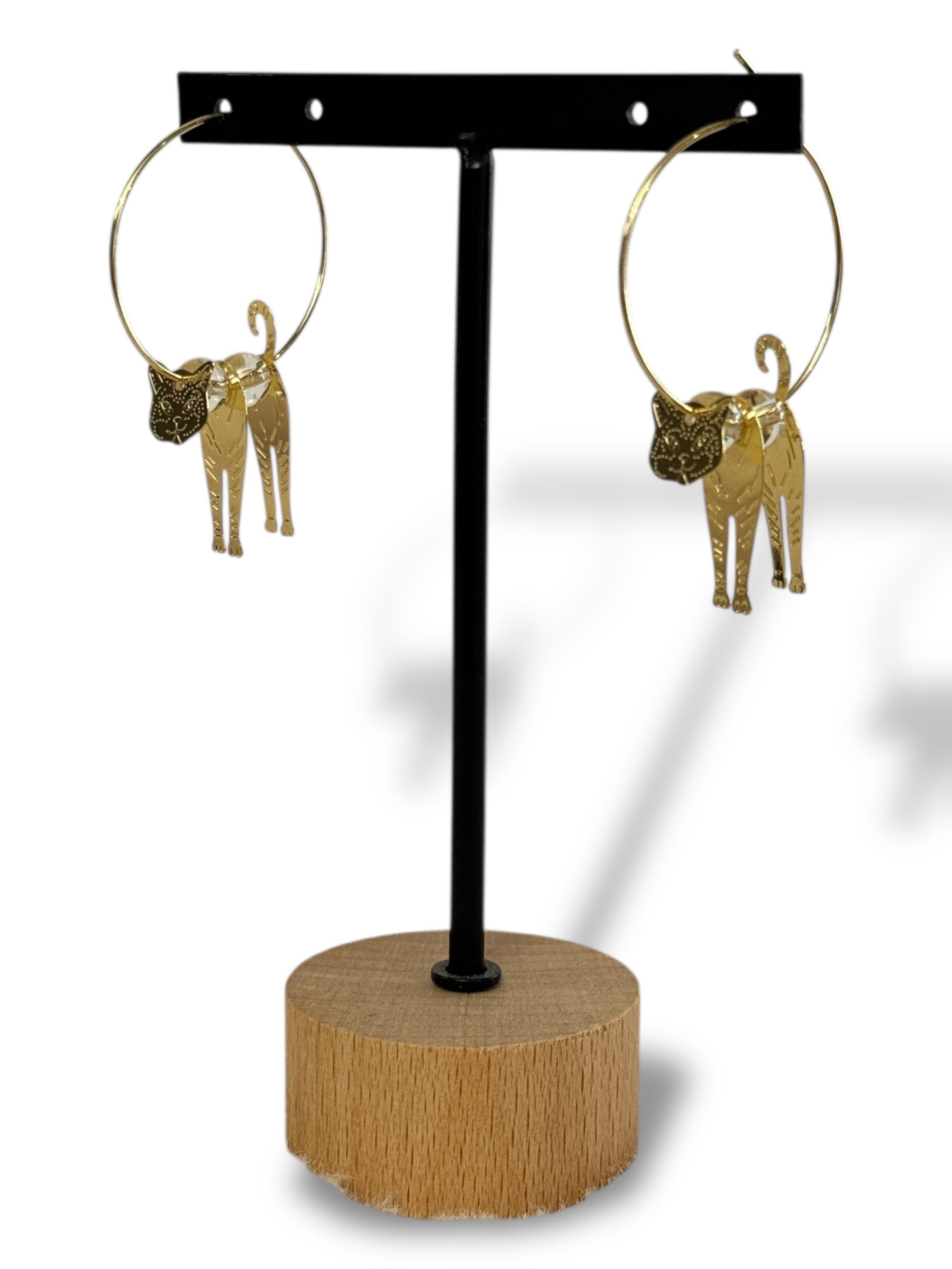 CHAT - BOUCLES D'OREILLES CREOLES AVEC PERLE