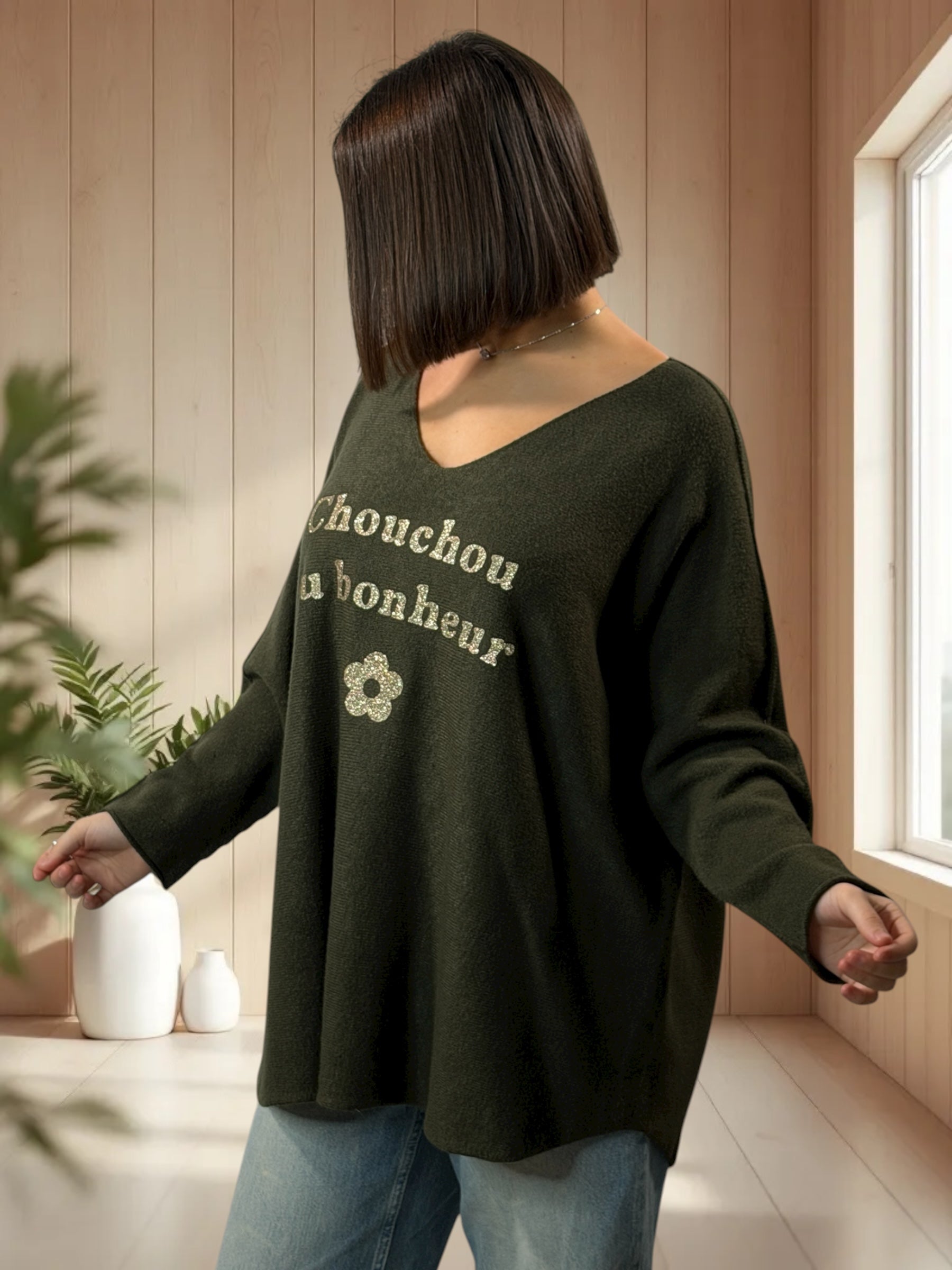 CHOUCHOU - PULL OVERSIZE KAKI JUSQU'A LA TAILLE 54