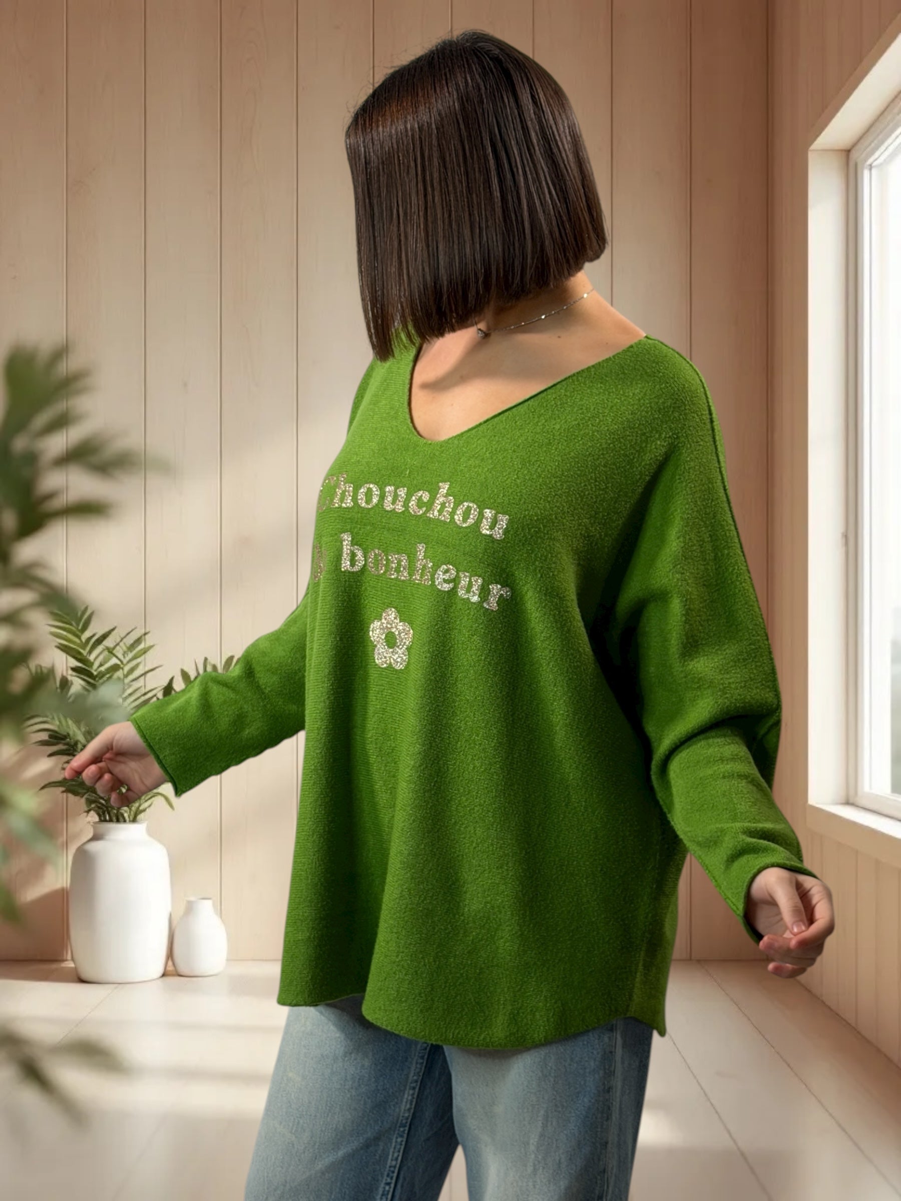 CHOUCHOU - PULL OVERSIZE VERT JUSQU'A LA TAILLE 54