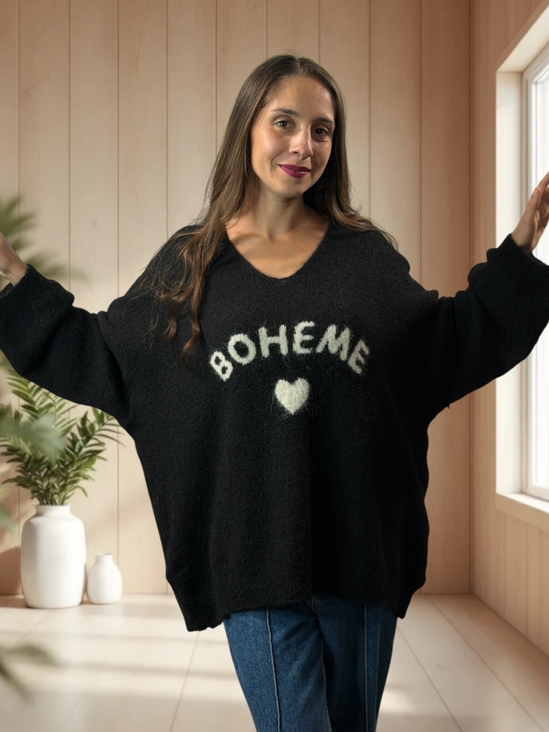CLAUDIO - PULL NOIR LOGO BOHEME JUSQU'A LA TAILLE 54/56