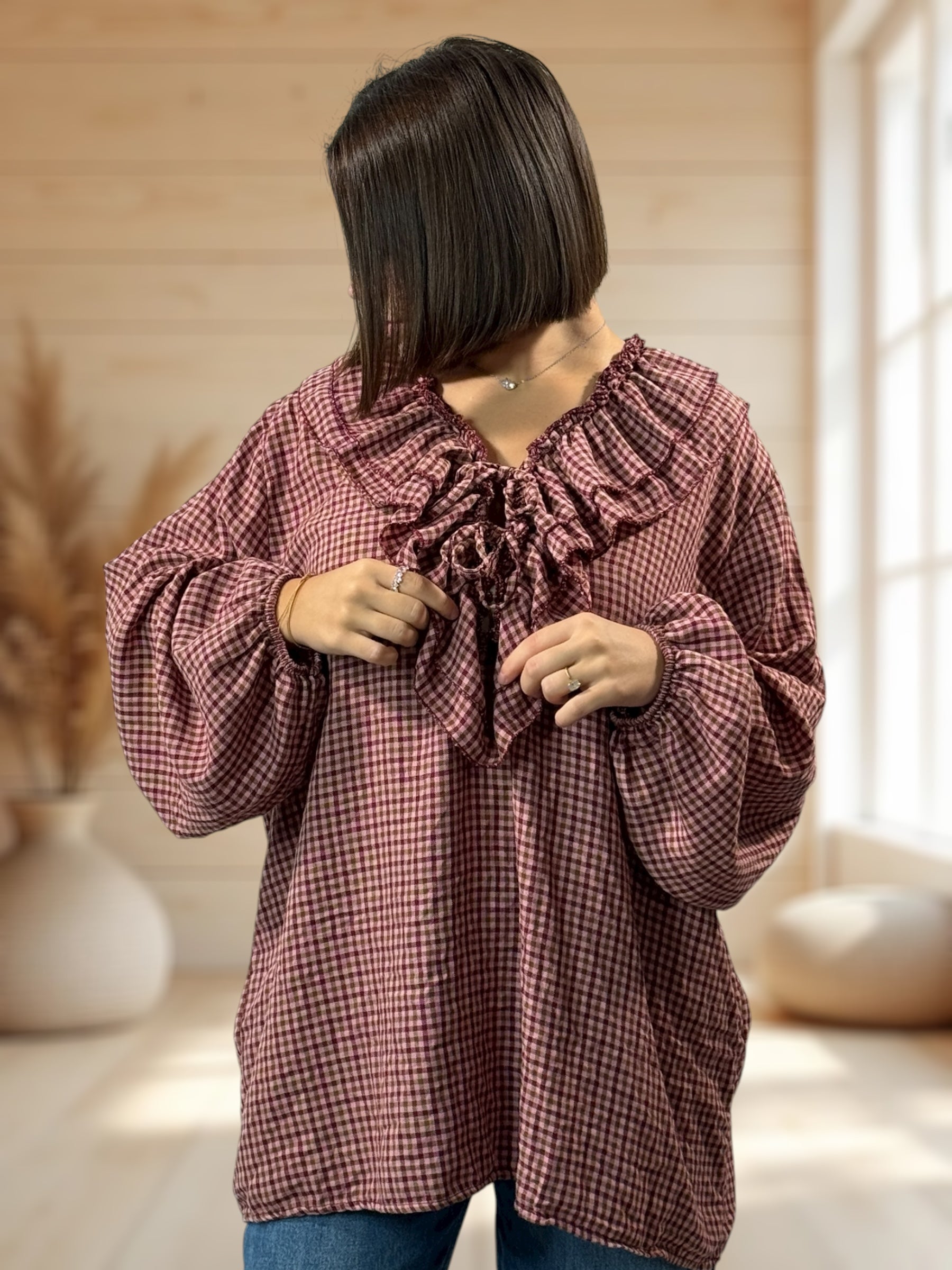 COLINE - BLOUSE A PETITS CARREAUX JUSQU'A LA TAILLE 52/54