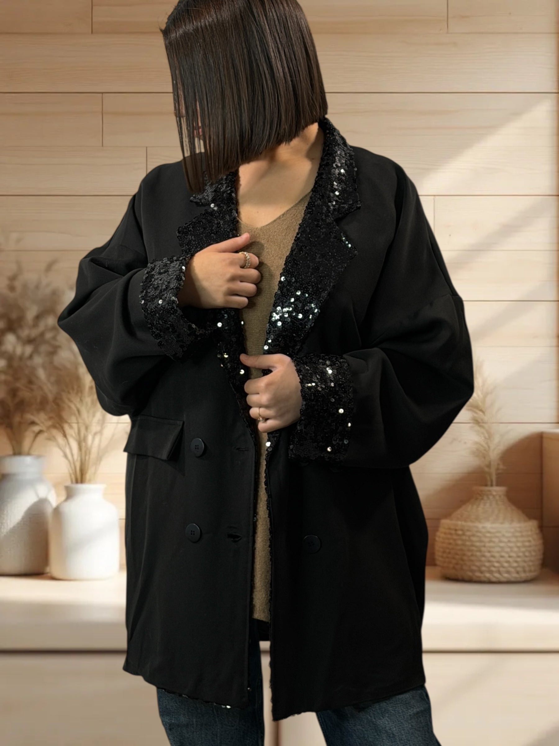 DANY - VESTE NOIR AVEC SEQUINS JUSQU'A LA TAILLE 50