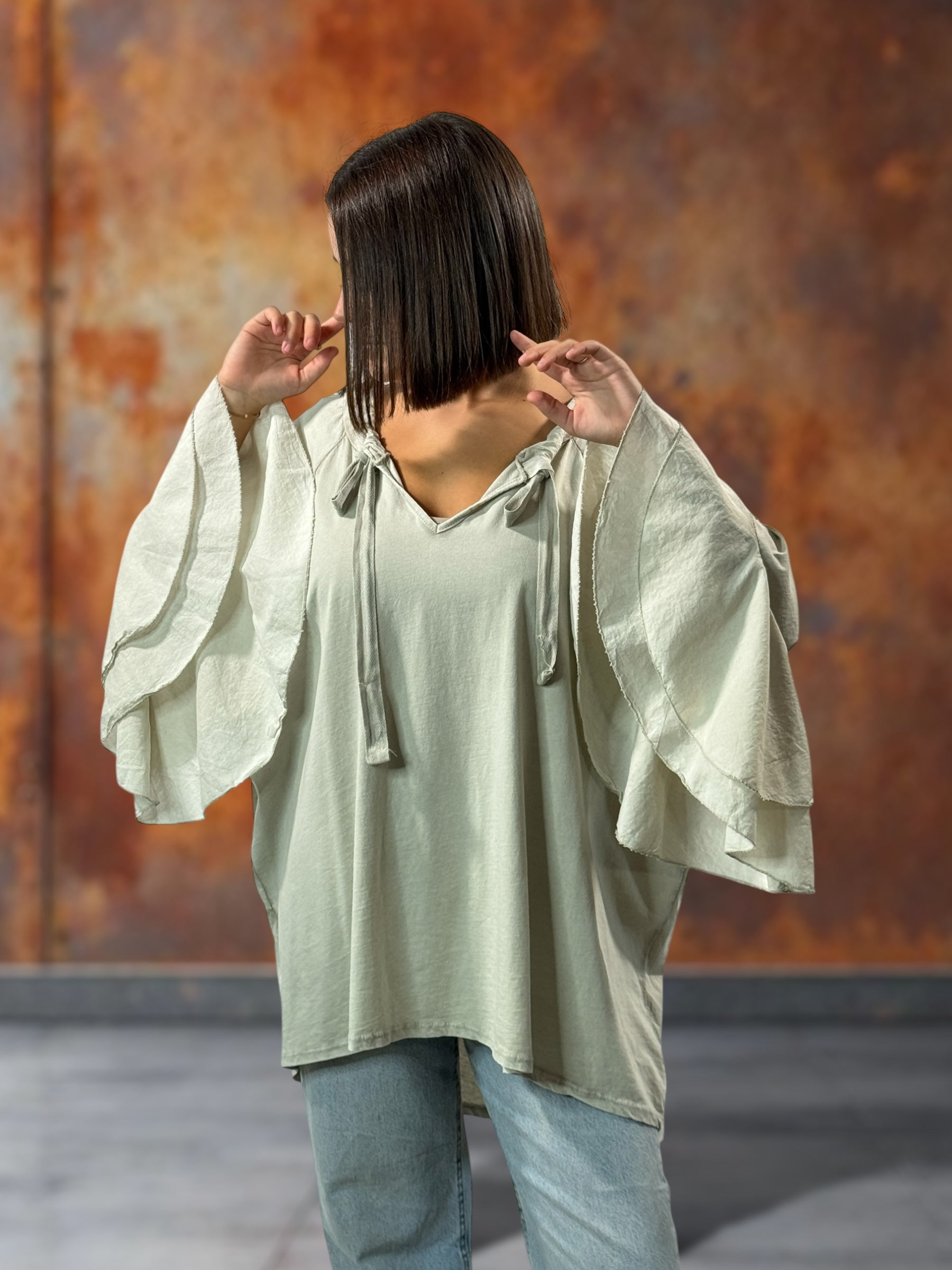 EMILIE - BLOUSE BEIGE EN COTON OVERSIZE JUSQU'A LA TAILLE 52