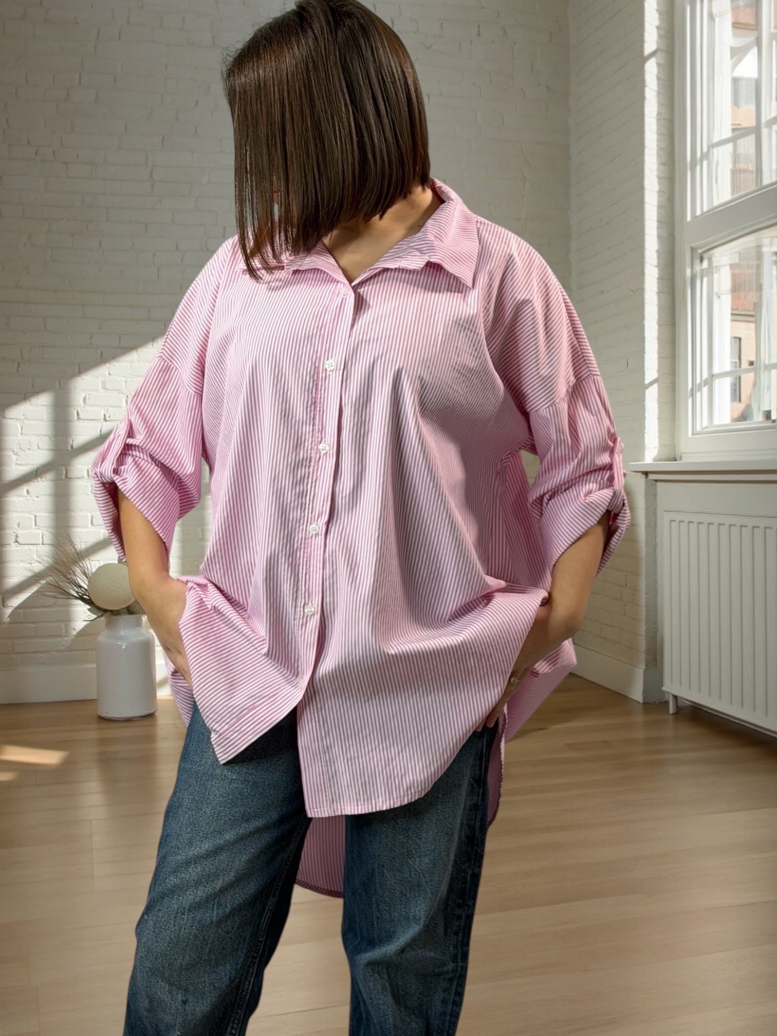EMMA - CHEMISE OVERSIZE ROSE A RAYURE JUSQU'A LA TAILLE 52/54