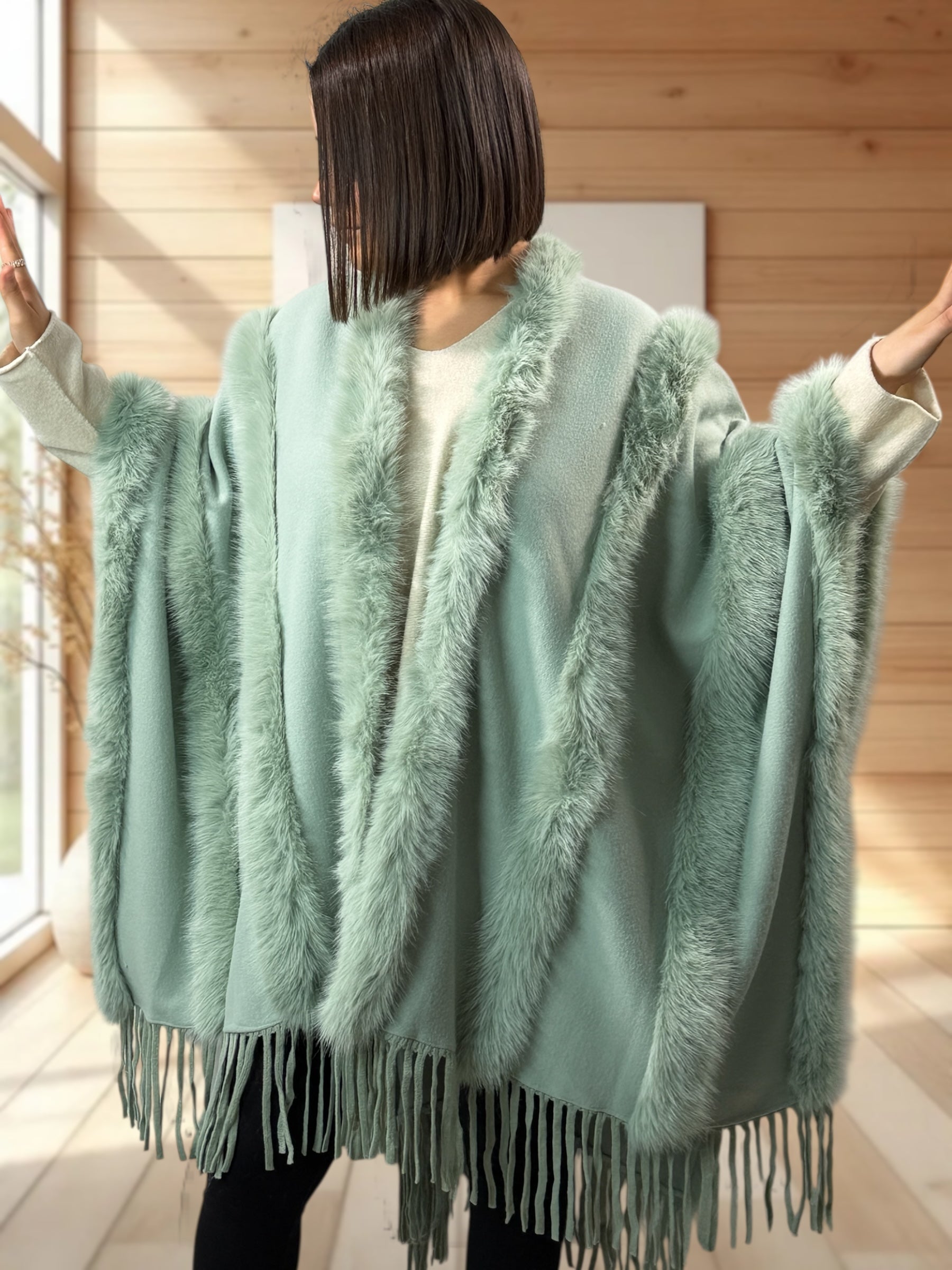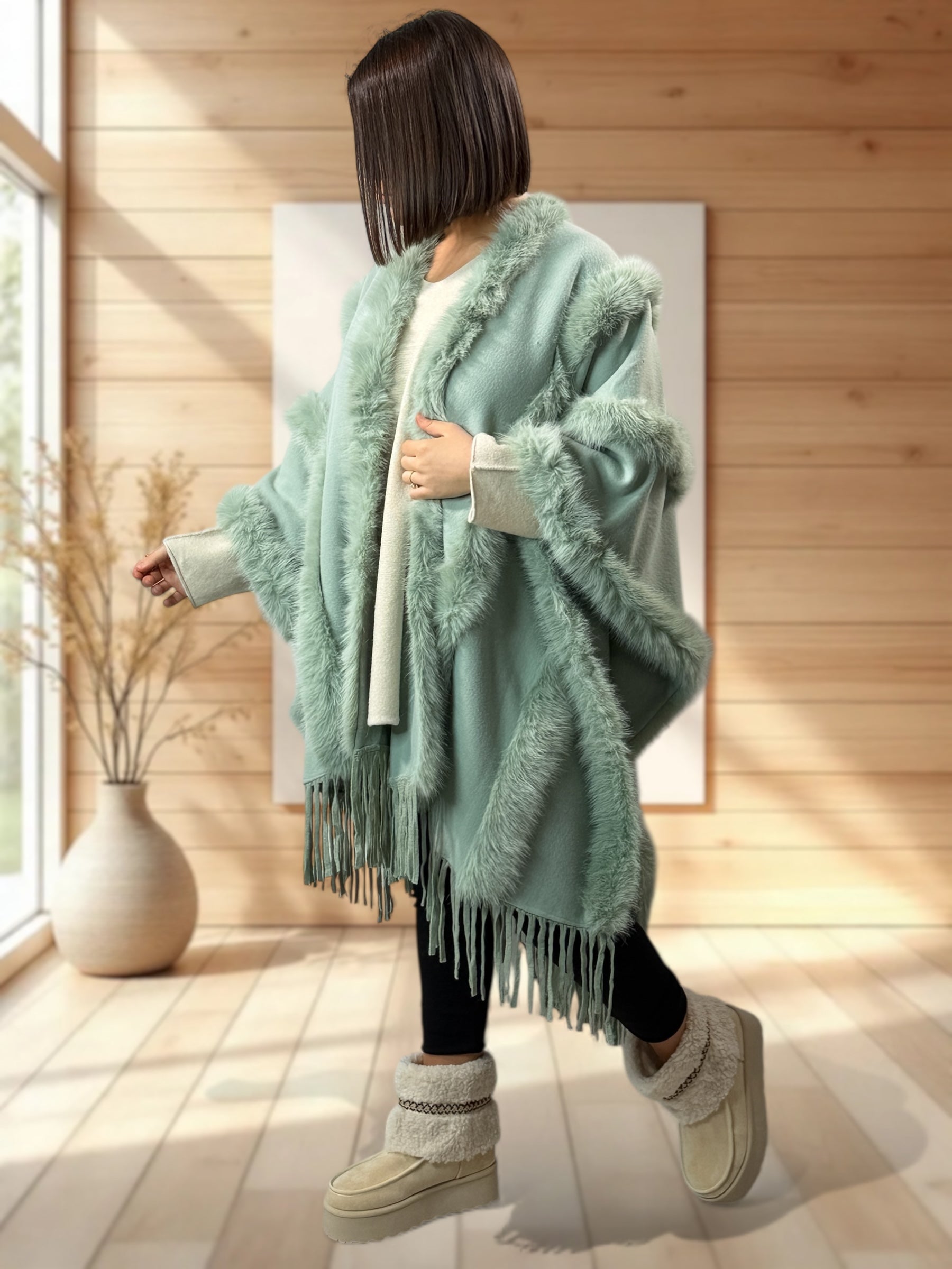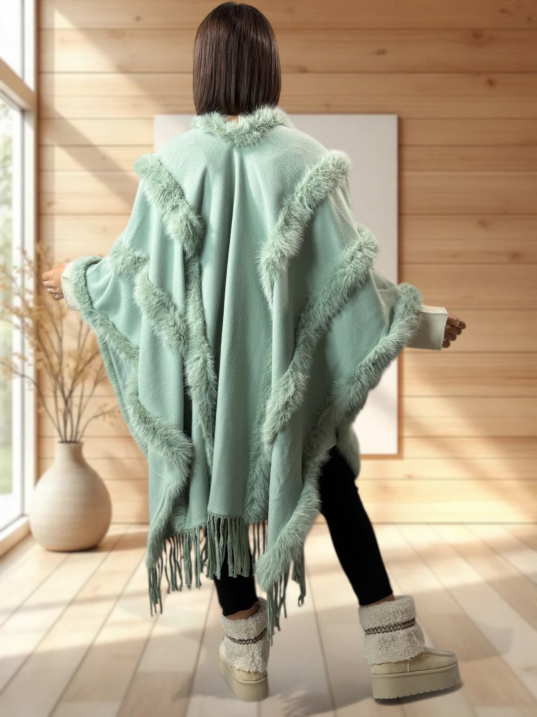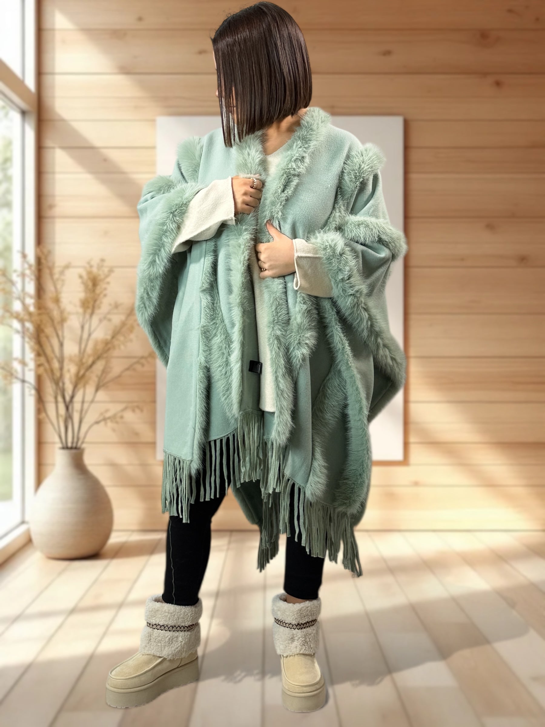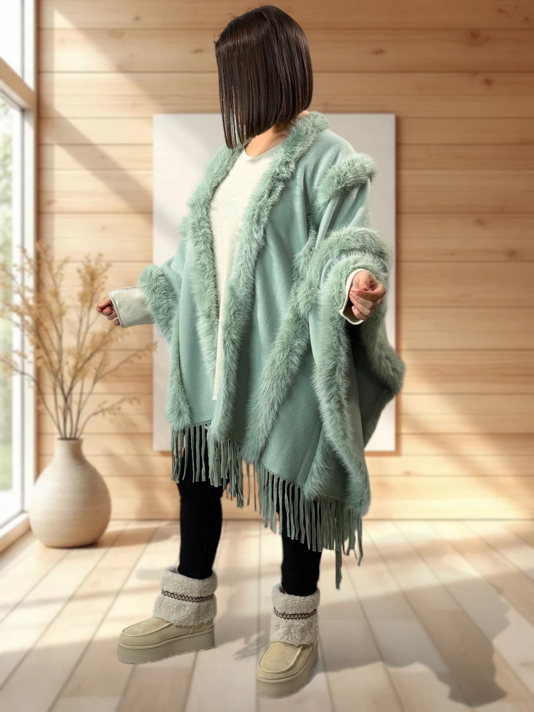 ERIKA - CAPE VERTE FAUSSE FOURRURE