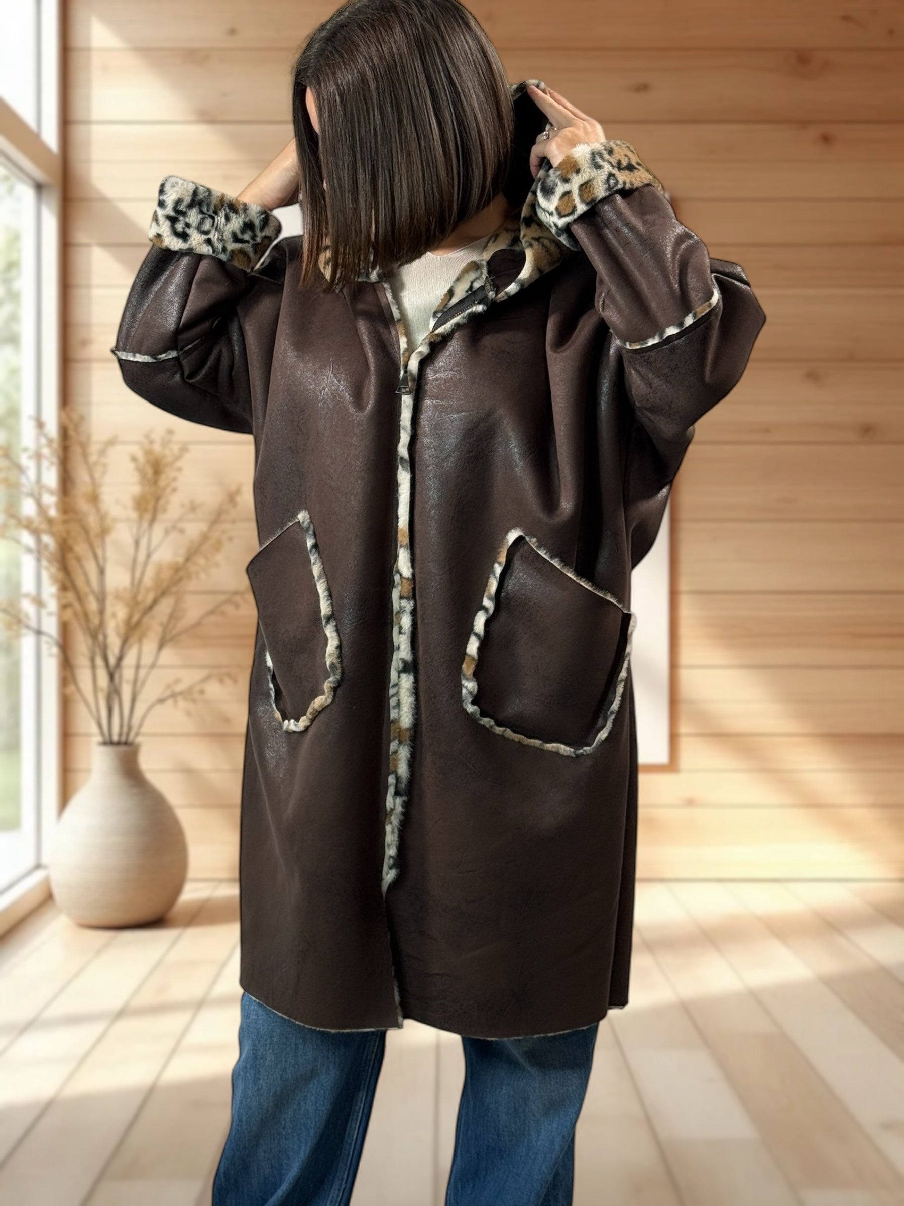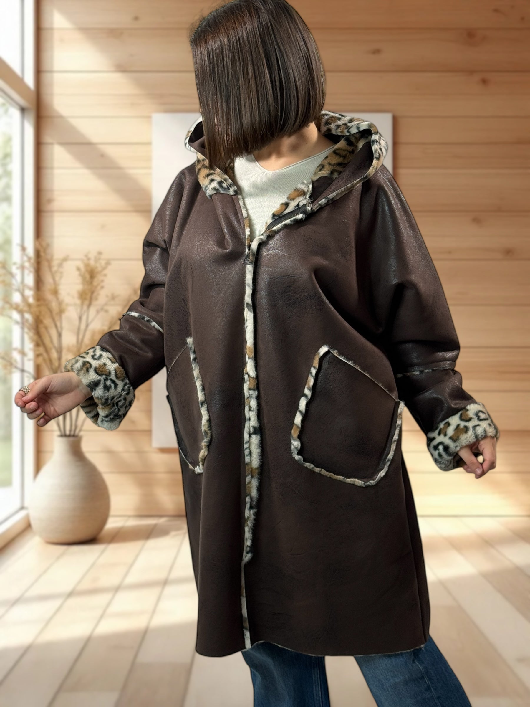 KARL - VESTE A CAPUCHE MARRON JUSQU'A LA TAILLE 54/56
