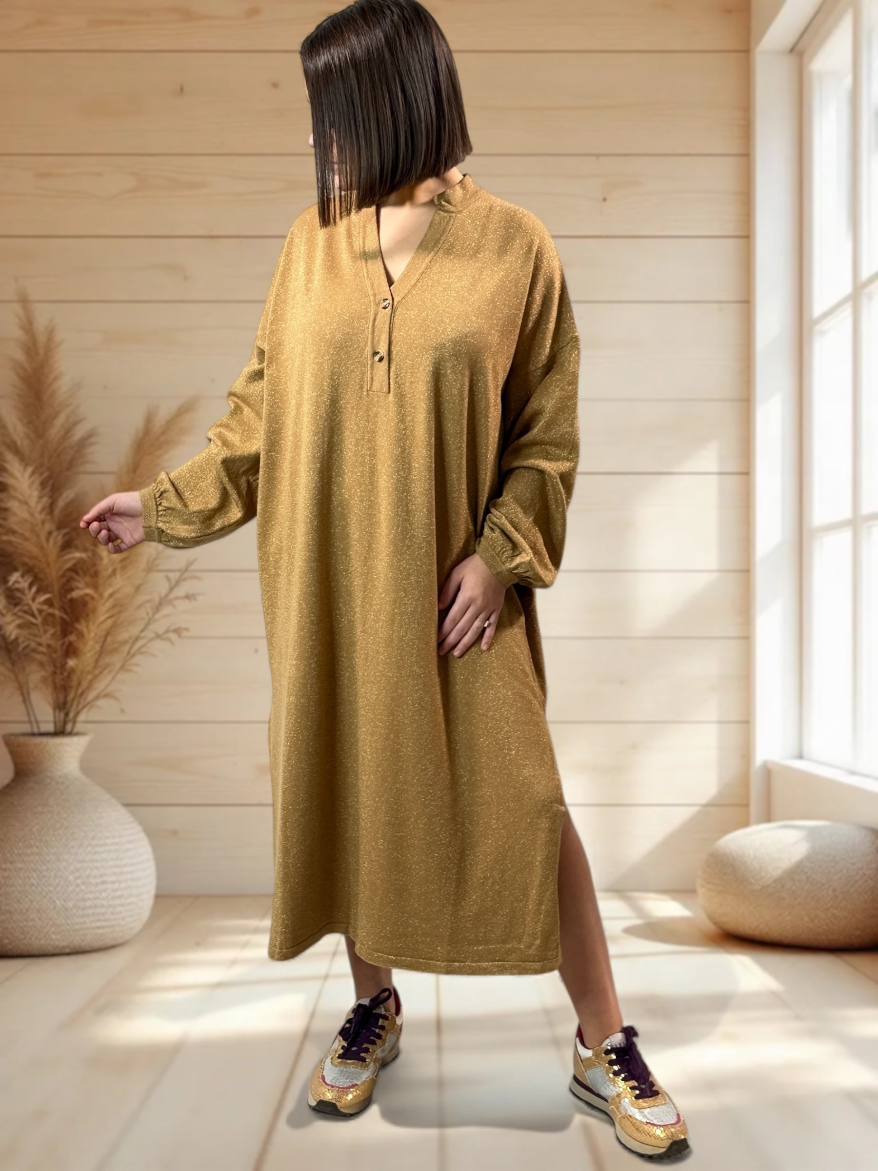 KATARINA - ROBE SCINTILLANTE EN MAILLE CAMEL OVERSIZE JUSQU'A LA TAILLE 52