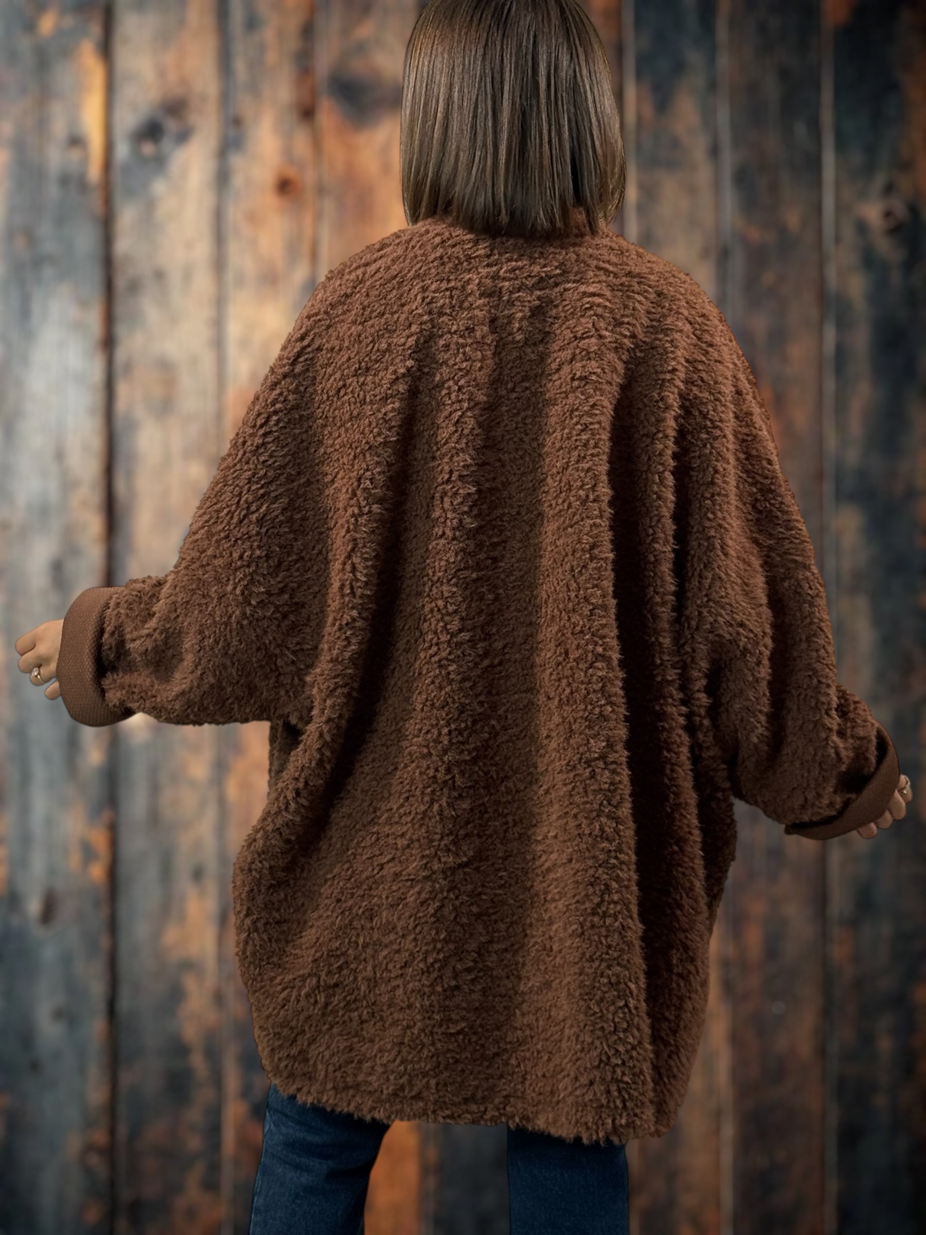 LILIROSE - VESTE OVERSIZE MARRON EN MOUMOUTE JUSQU'A LA TAILLE 56/58