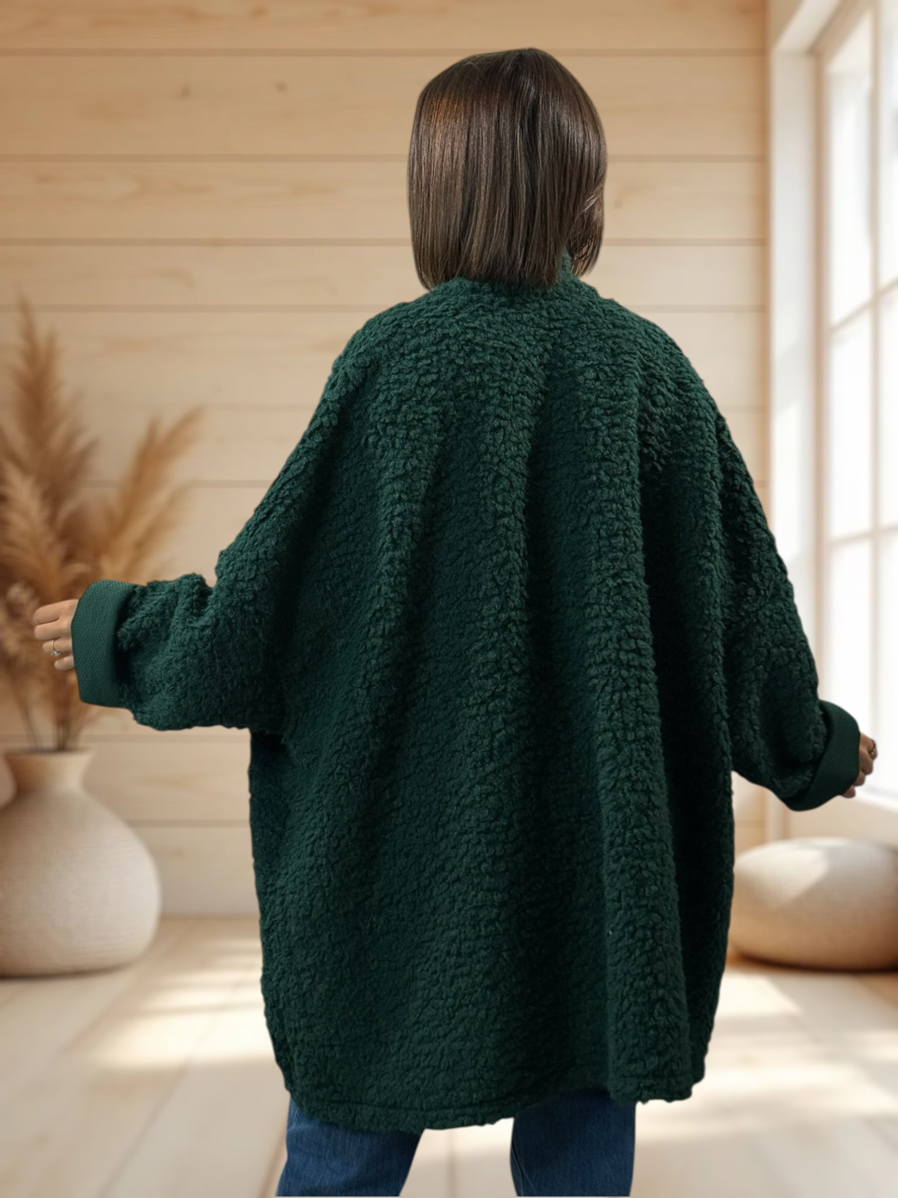 LILIROSE - VESTE OVERSIZE VERTE EN MOUMOUTE JUSQU'A LA TAILLE 56/58