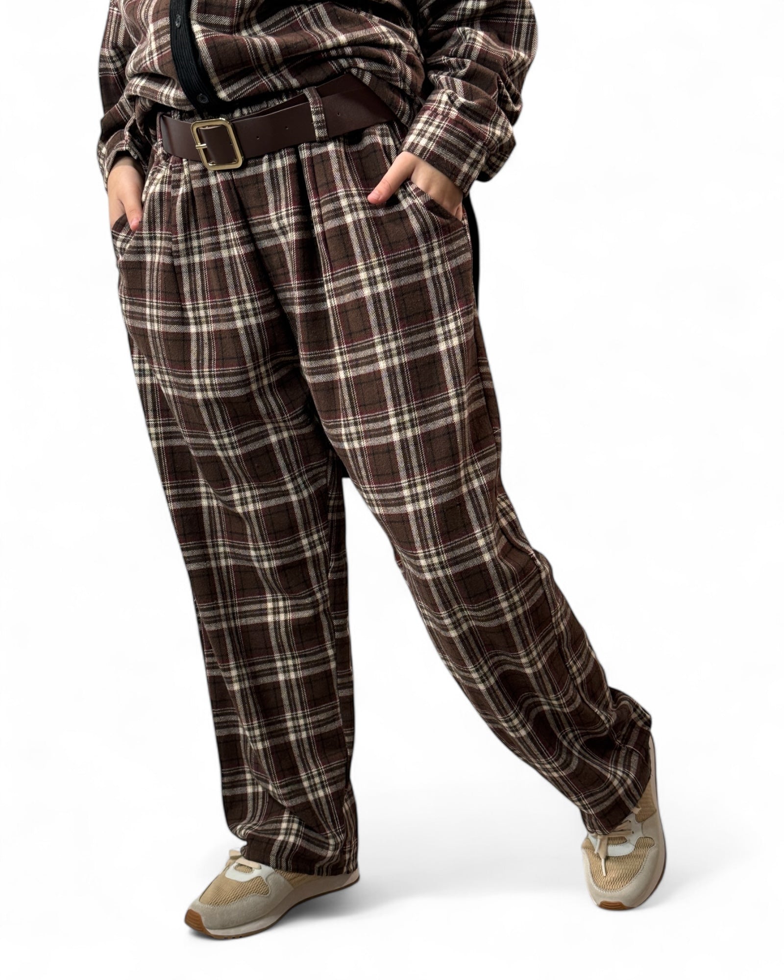 LONDON - PANTALON ECOSSAIS MARRON JUSQU'A LA TAILLE 48/50