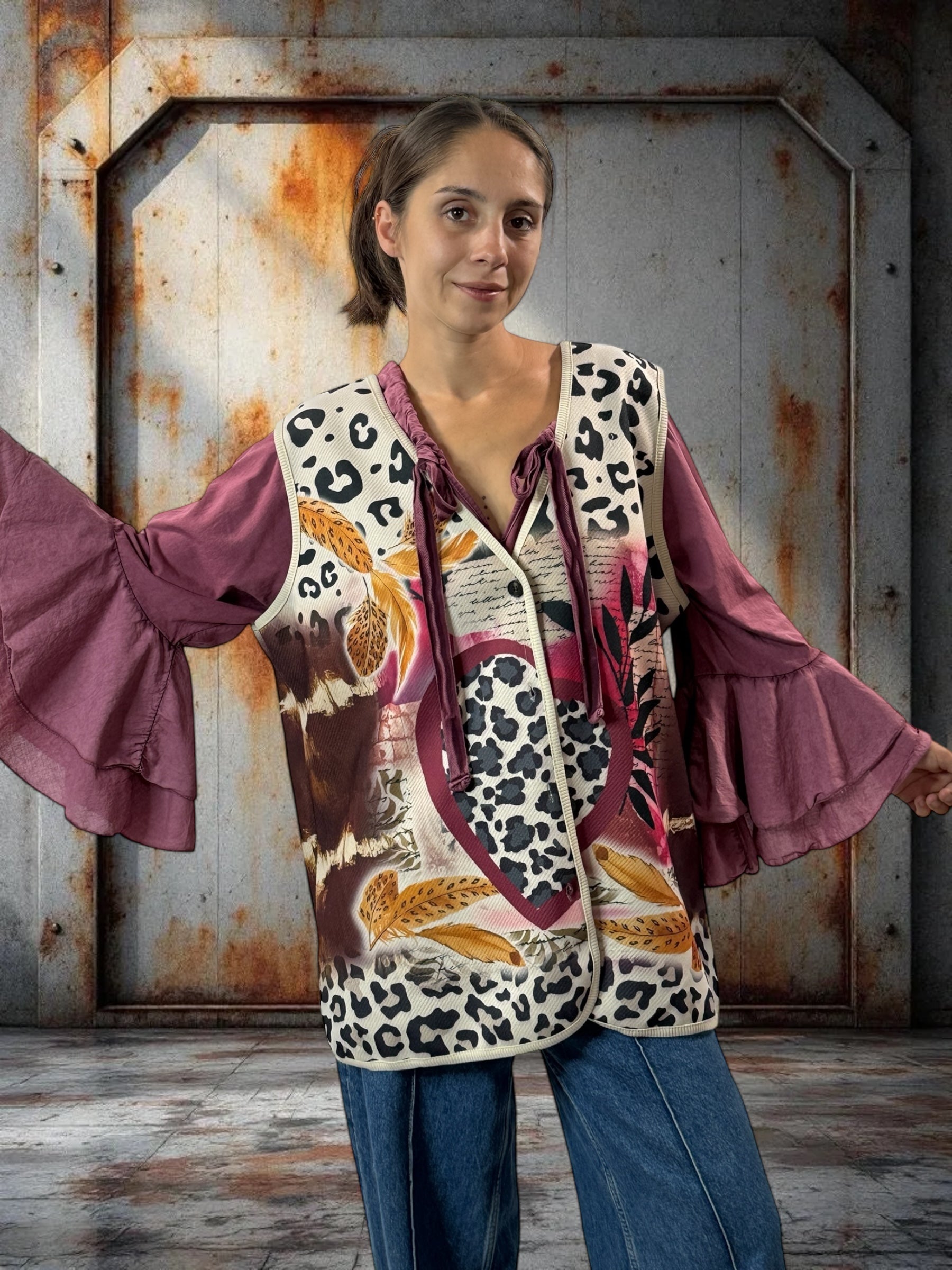 LORENZO - GILET SANS MANCHE A MOTIF JUSQU'A LA TAILLE 50/52