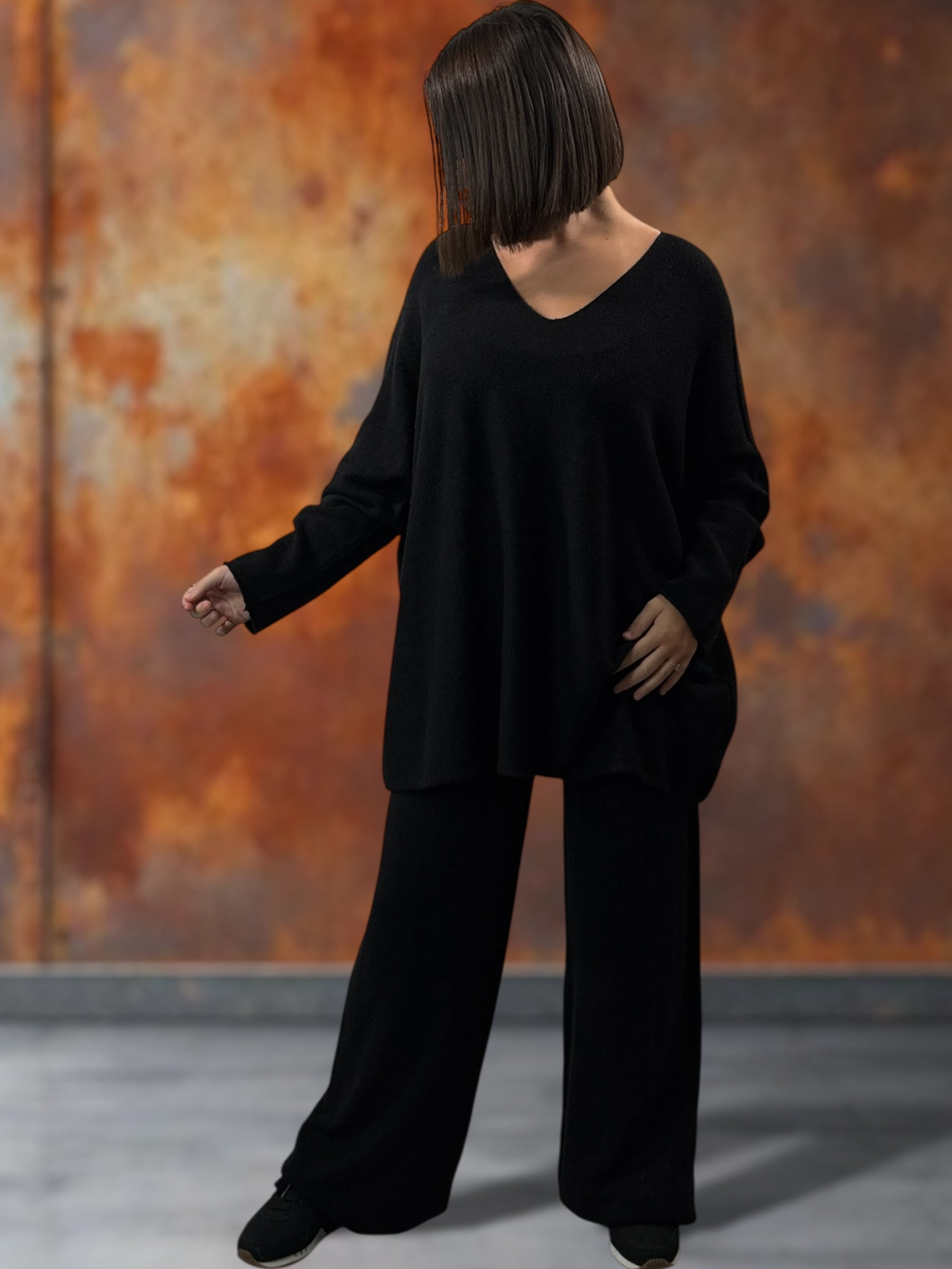LOUANE - ENSEMBLE EN MAILLE NOIR JUSQU'A LA TAILLE 52