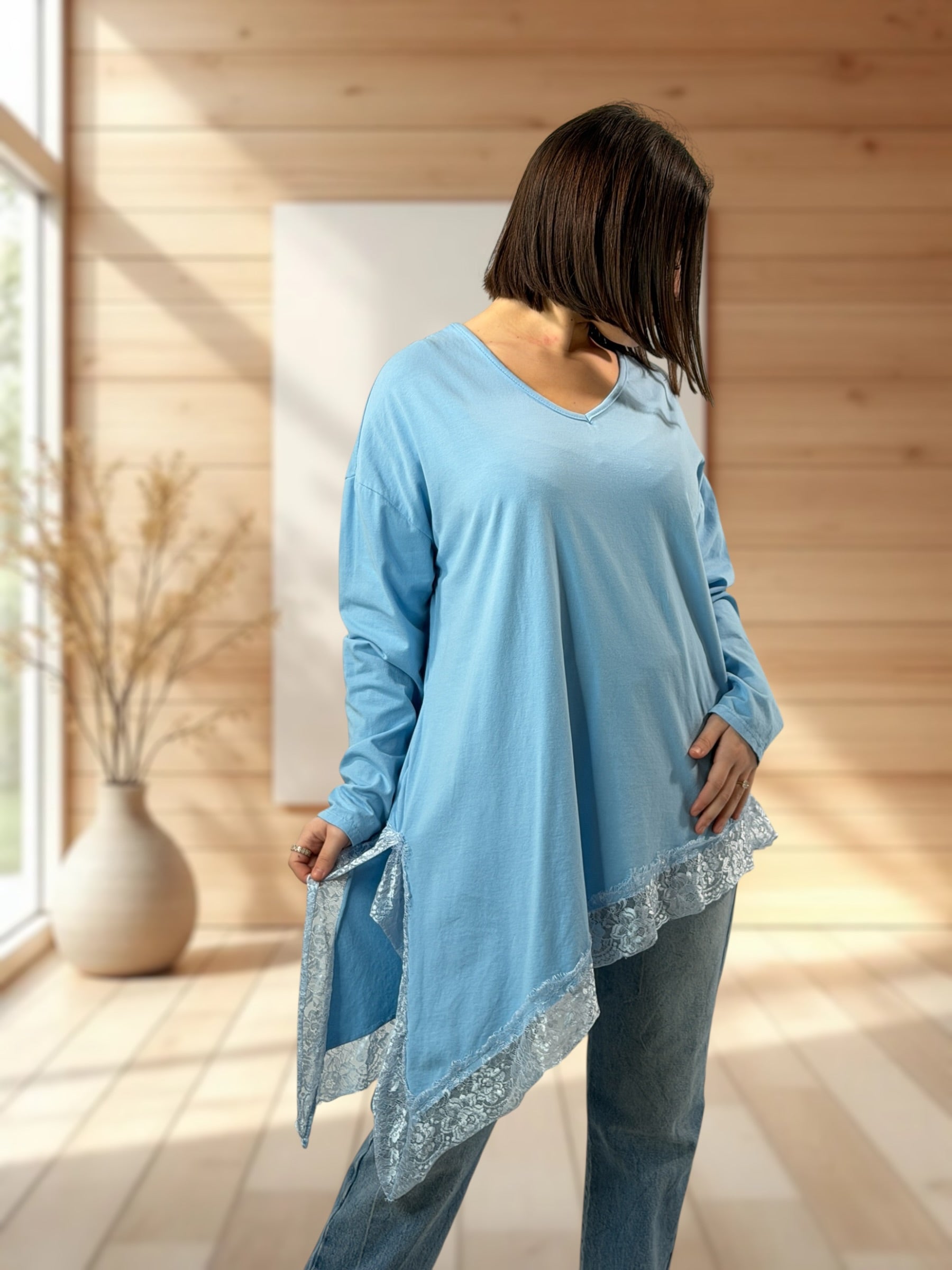 - T-shirt asymétrique bordé de dentelle