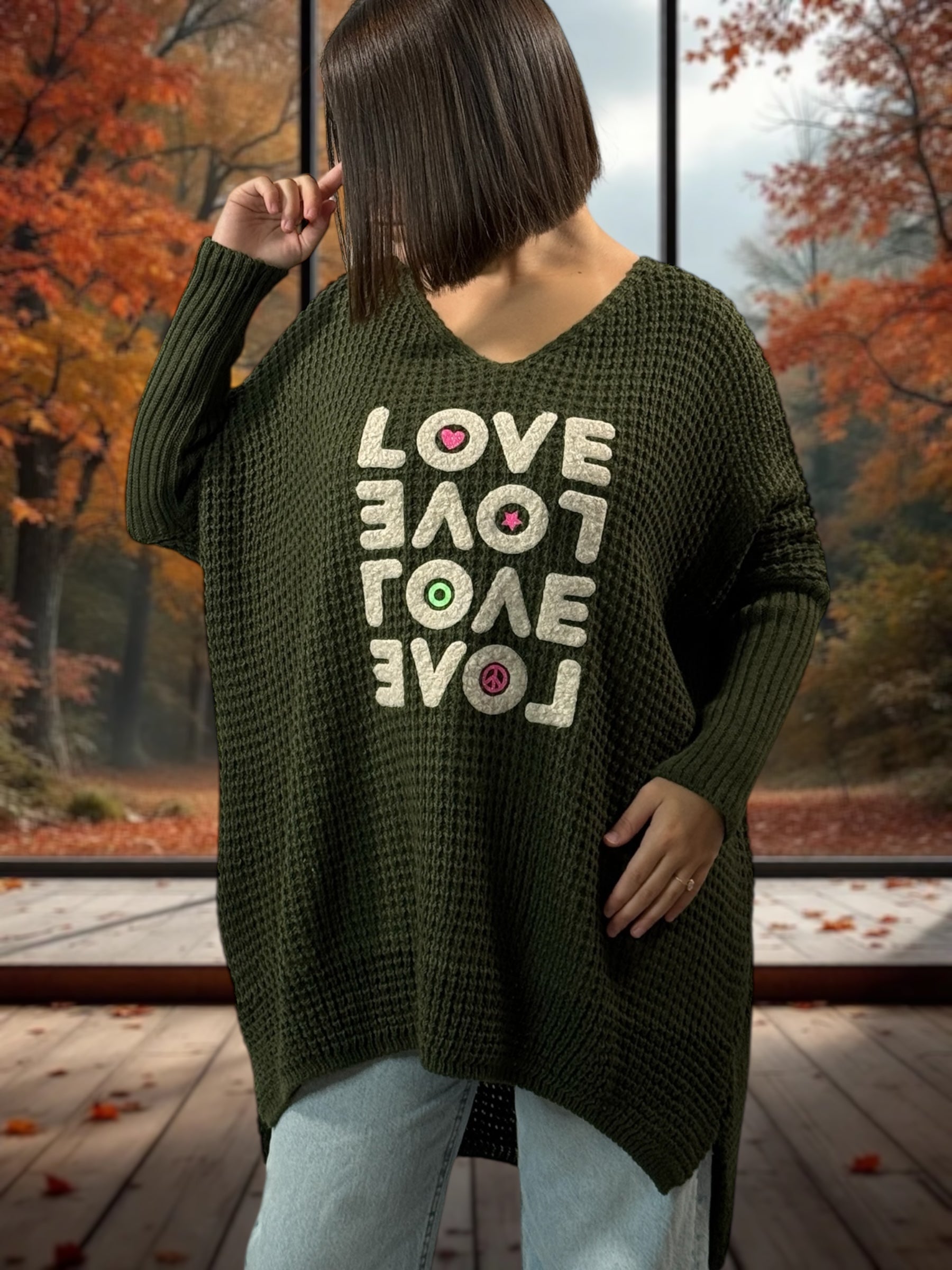 LOVELY - PULL OVERSIZE KAKI JUSQU'A LA TAILLE 56/58