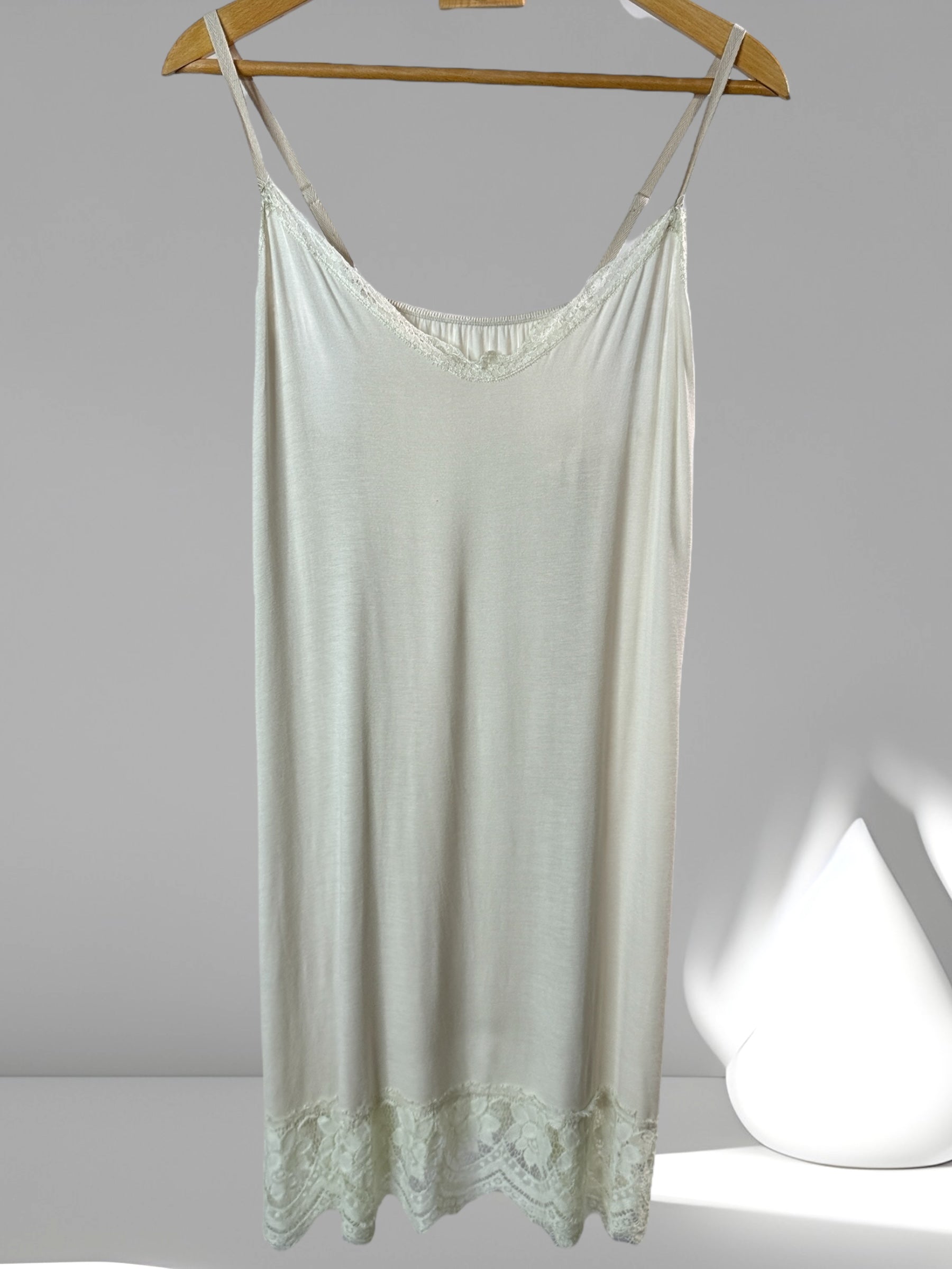 LUCINDA - FOND DE ROBE BEIGE BORDE DE DENTELLE JUSQU'A LA TAILLE 54