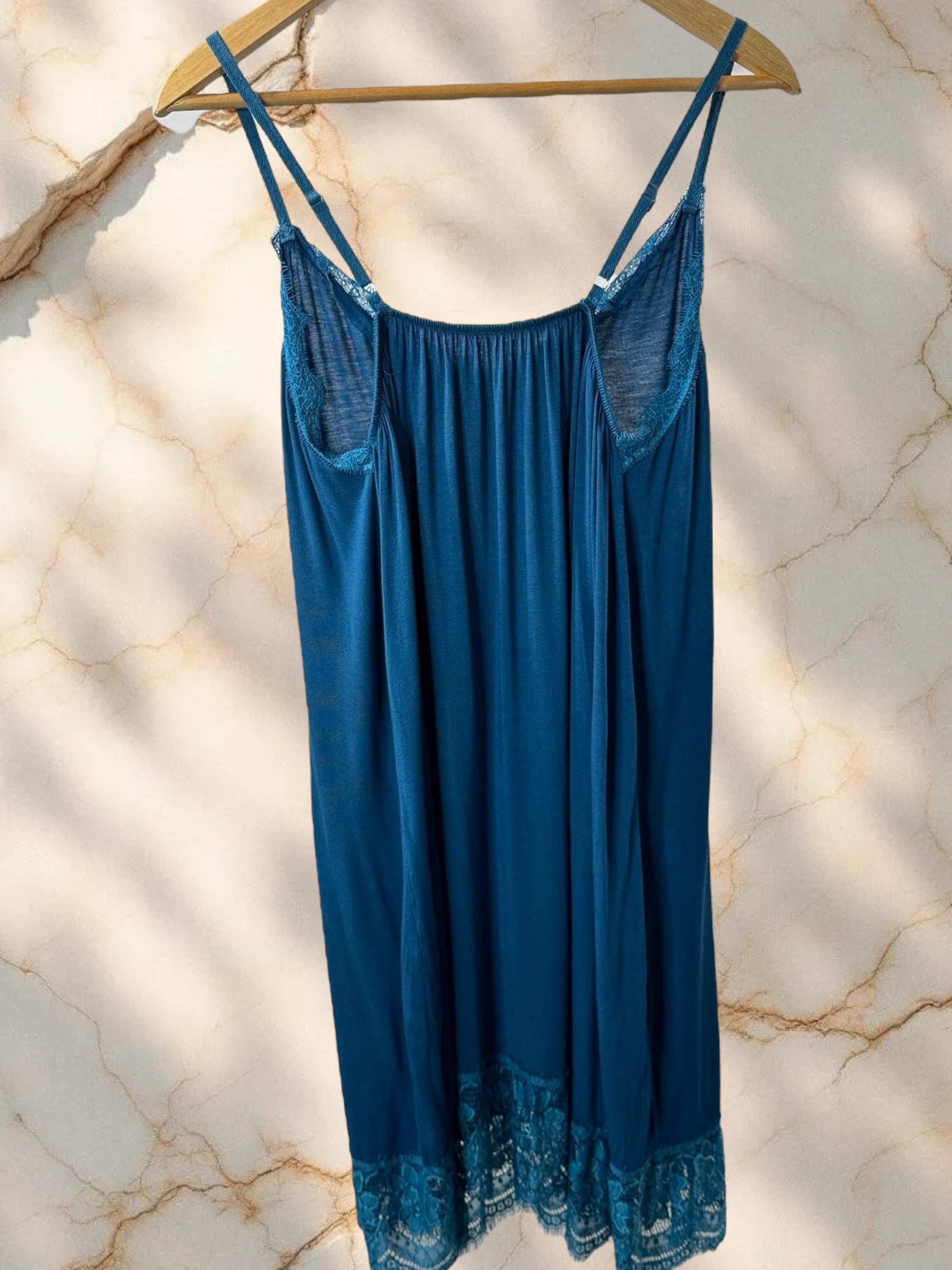 LUCINDA - FOND DE ROBE BLEU BORDE DE DENTELLE JUSQU'A LA TAILLE 54