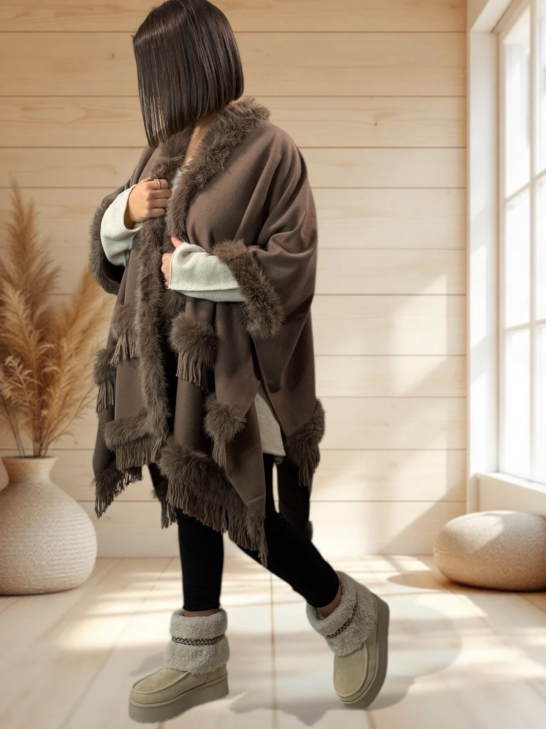 MAGNOLIA - CAPE MARRON FAUSSE FOURRURE