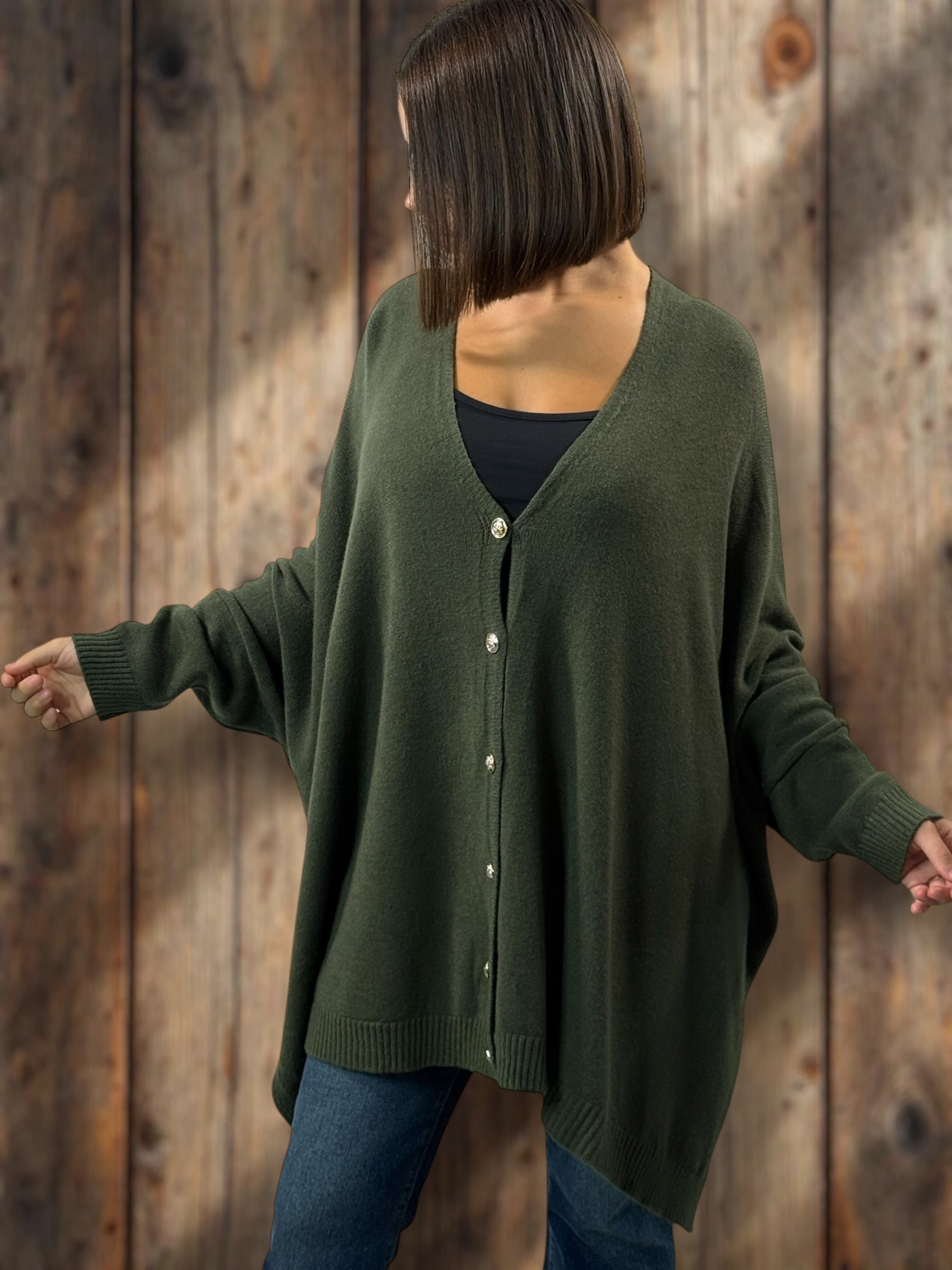 MATHILDE - GILET OVERSIZE KAKI JUSQU'A LA TAILLE 56/58