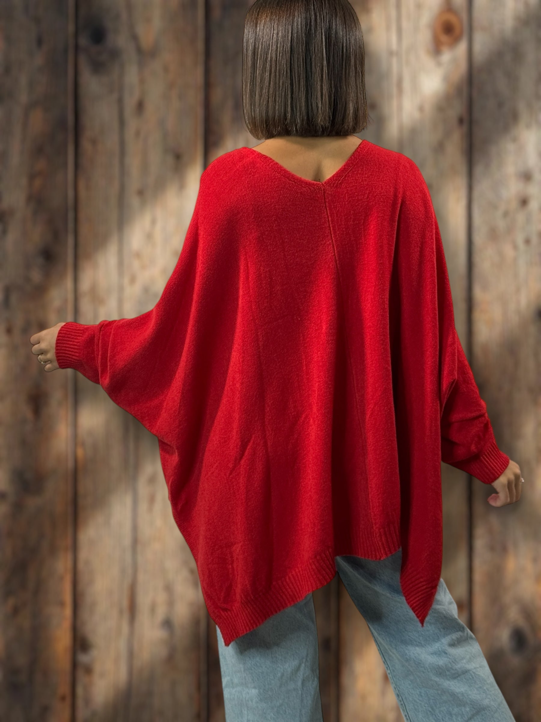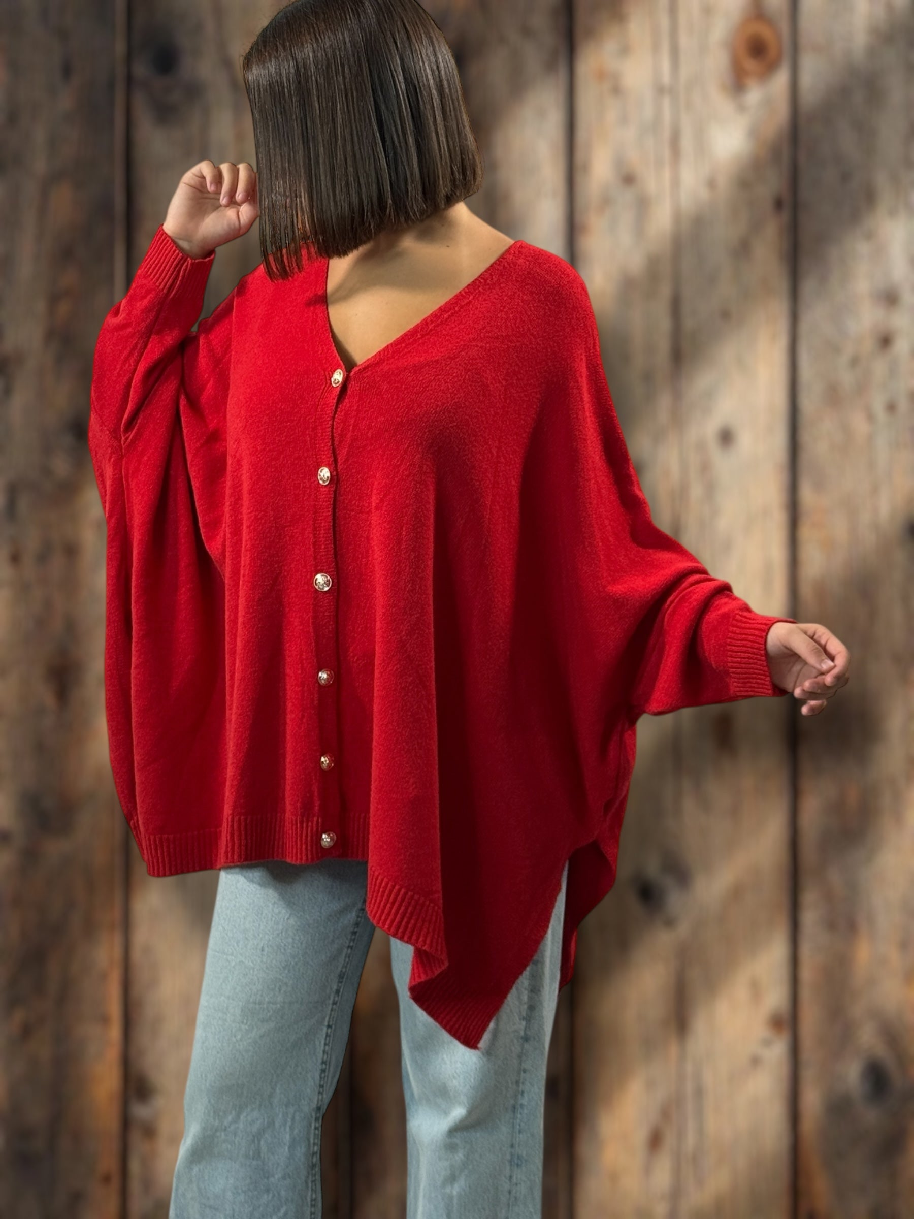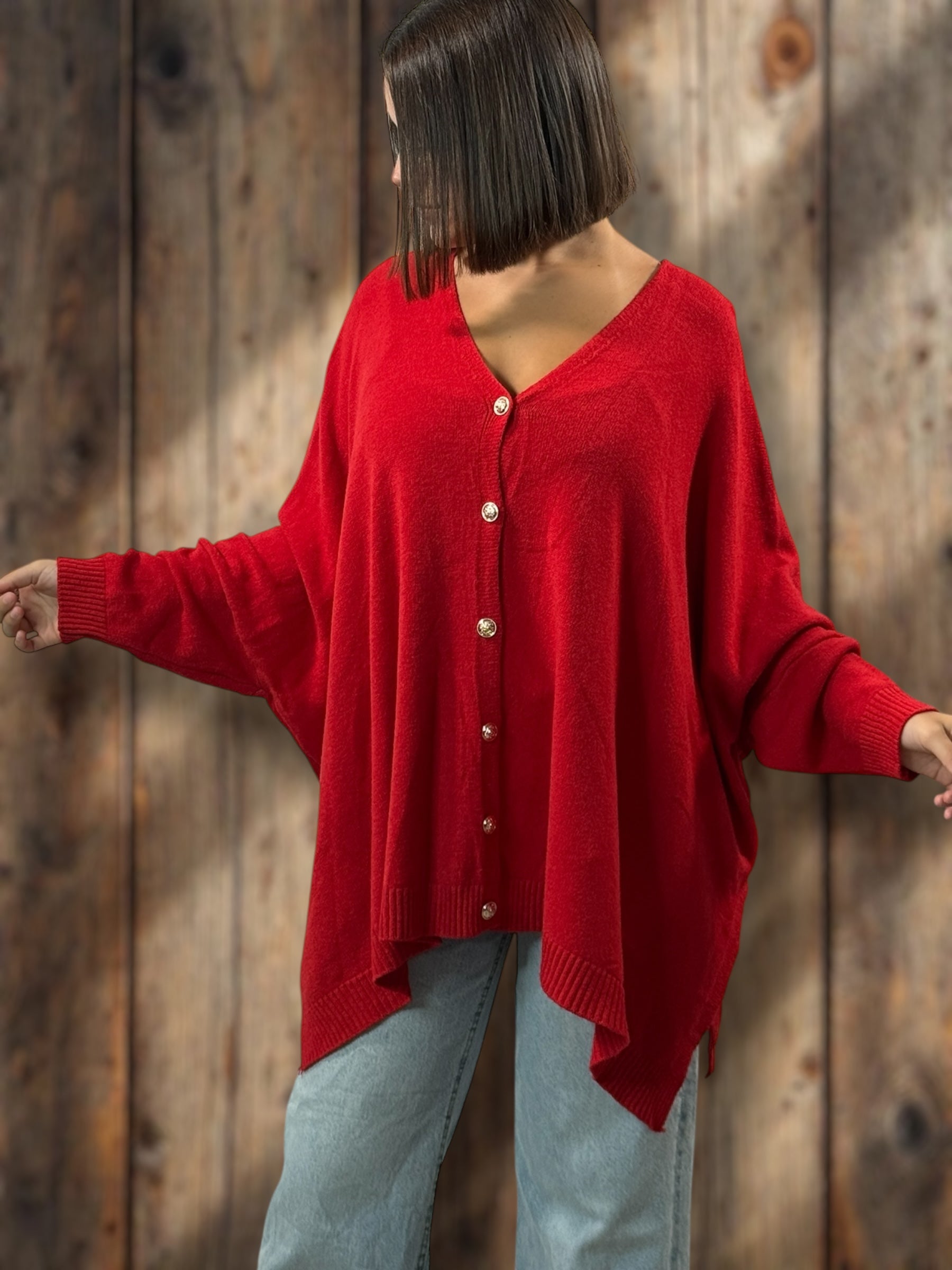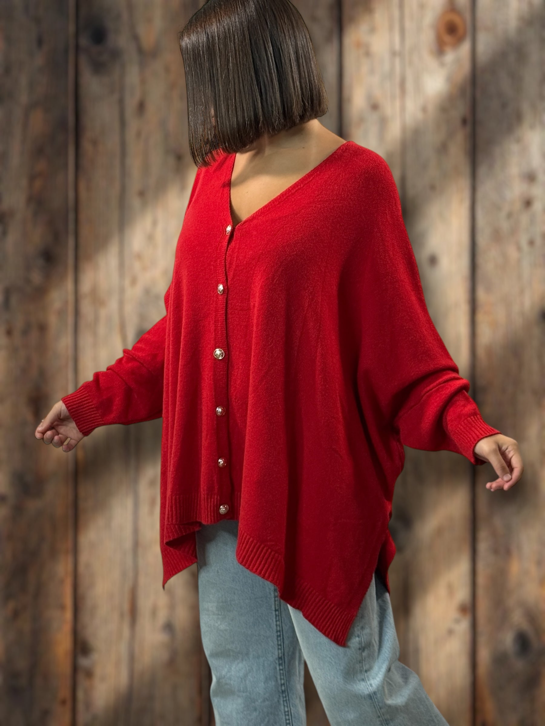 MATHILDE - GILET OVERSIZE ROUGE JUSQU'A LA TAILLE 56/58
