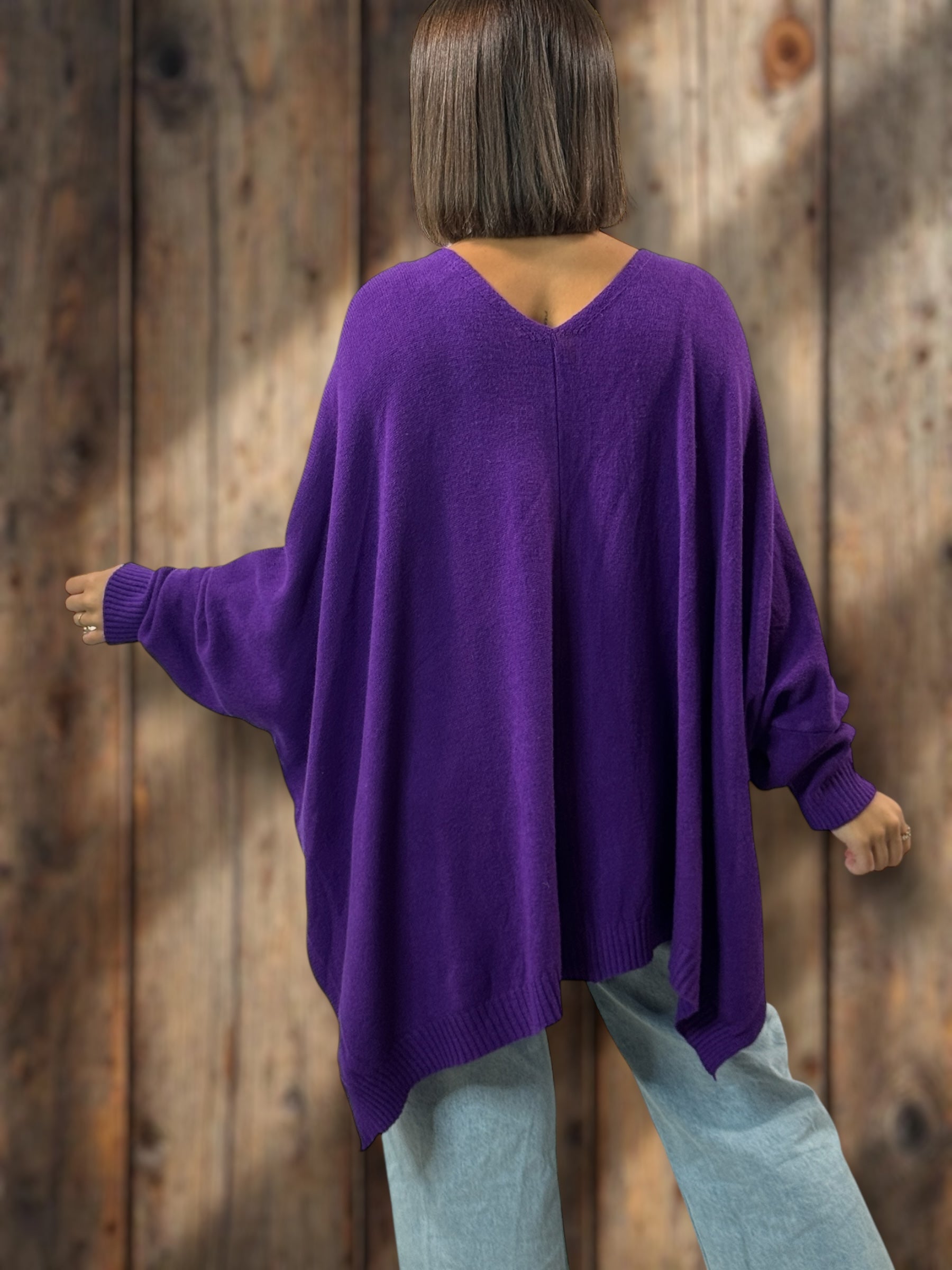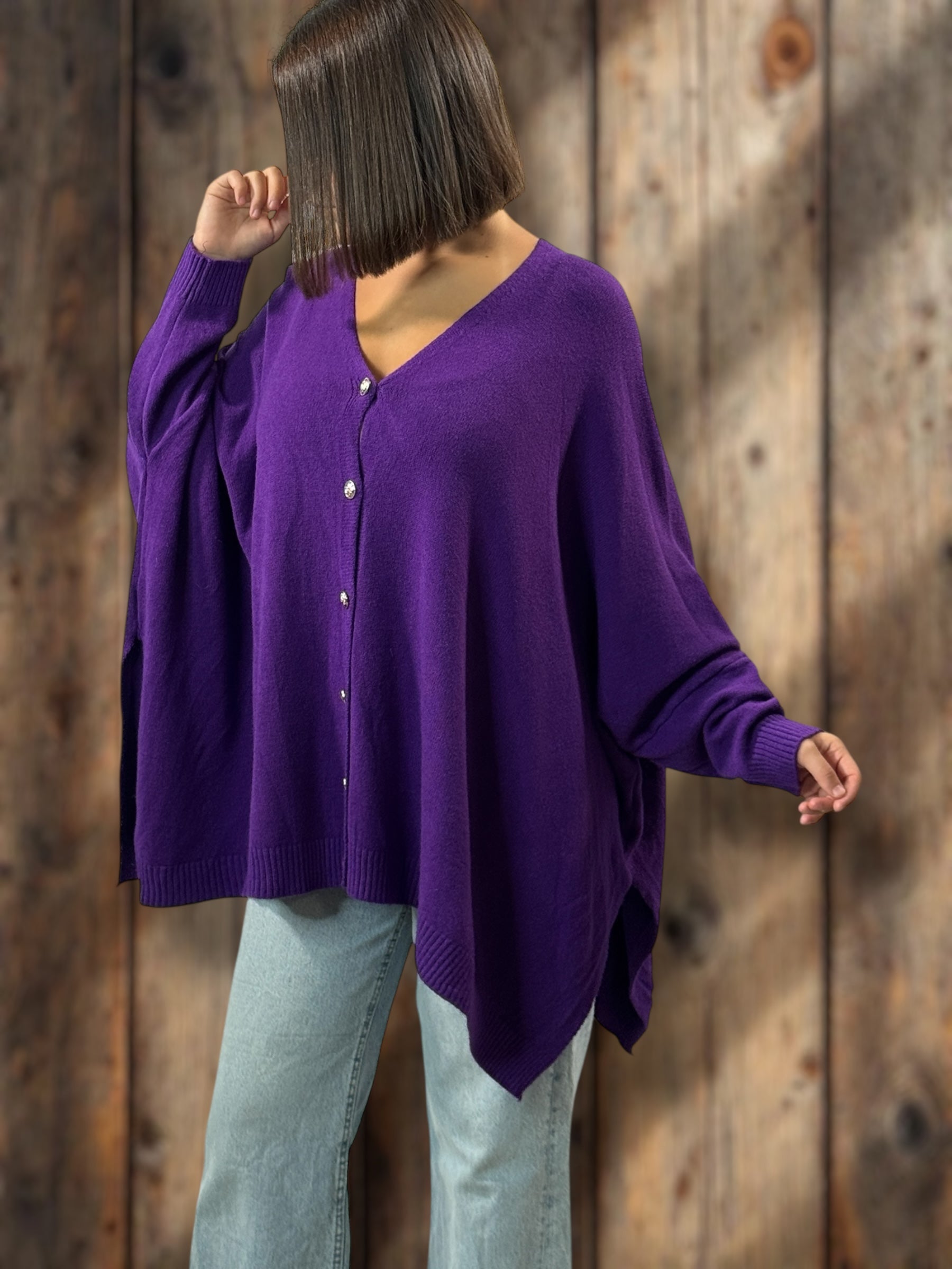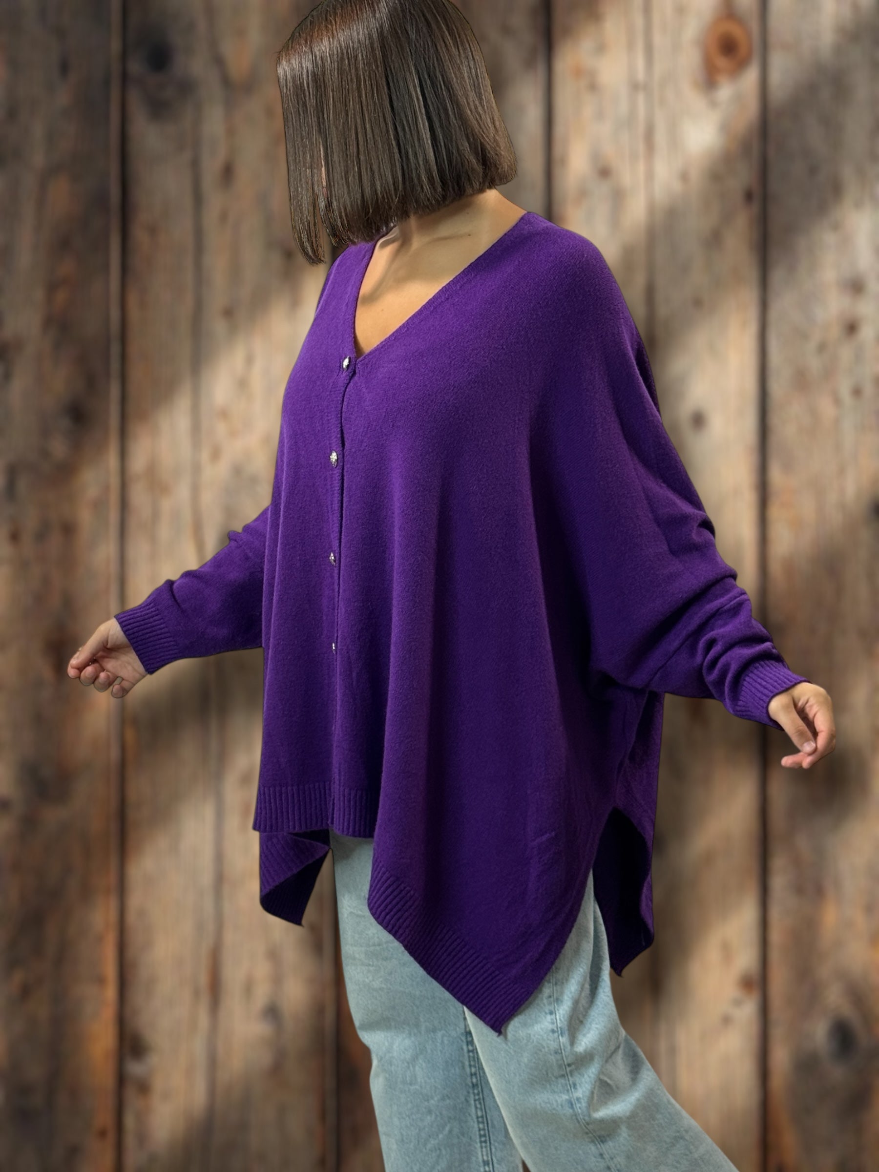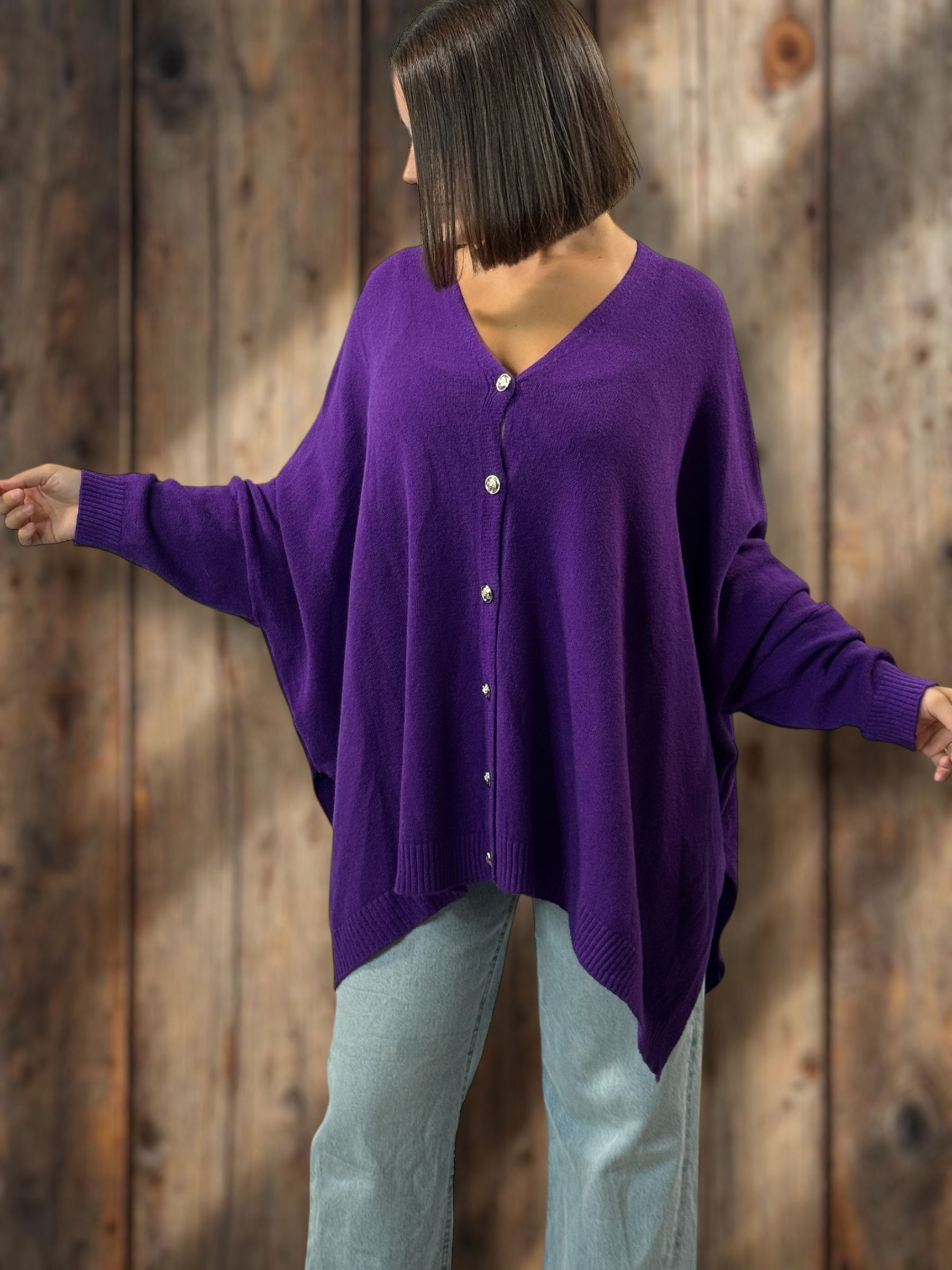 MATHILDE - GILET OVERSIZE VIOLET JUSQU'A LA TAILLE 56/58