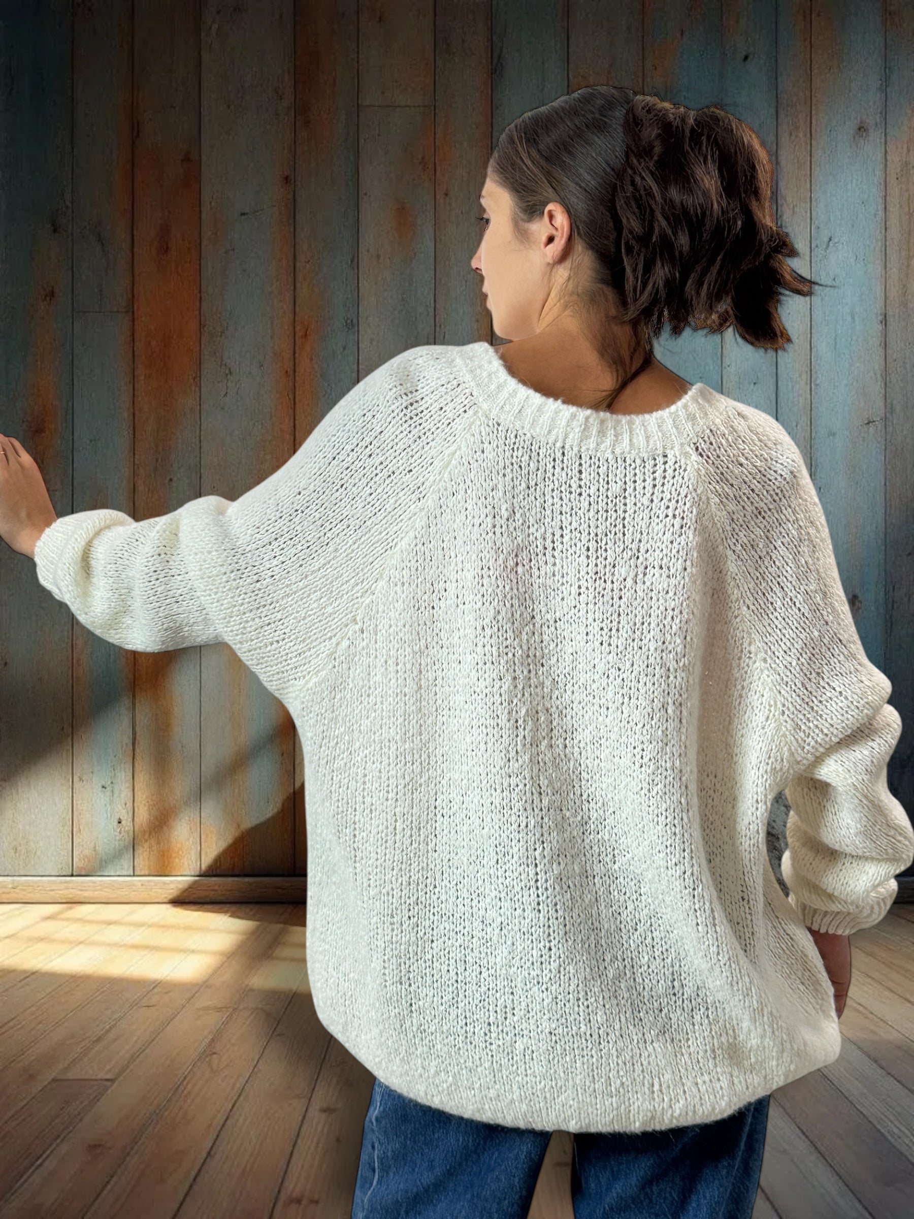 MATTEO - PULL BLANC CASSE AVEC MOHAIR JUSQU'A LA TAILLE 54