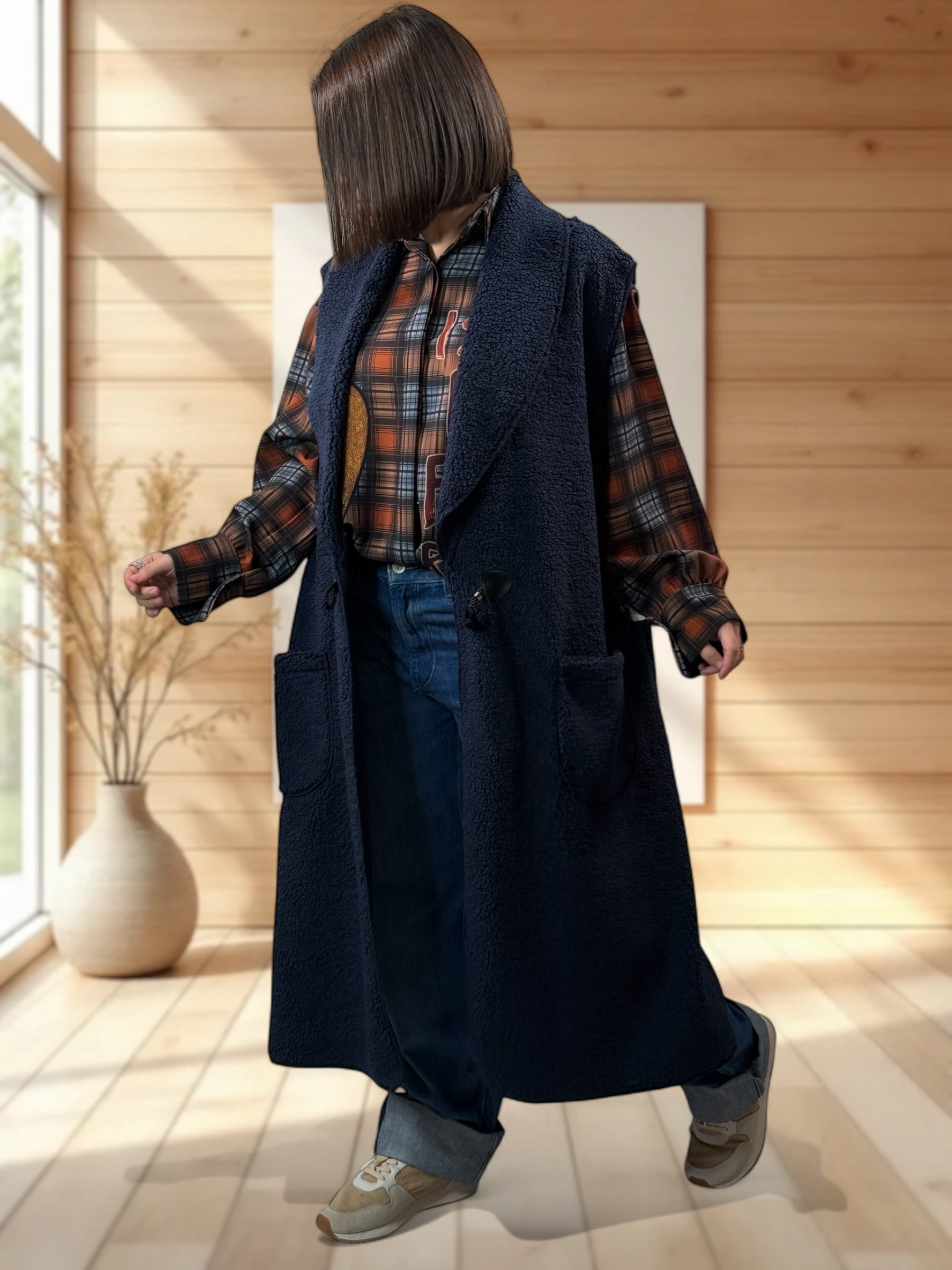 MAUD - GILET MARINE SANS MANCHES JUSQU'A LA TAILLE 54/56