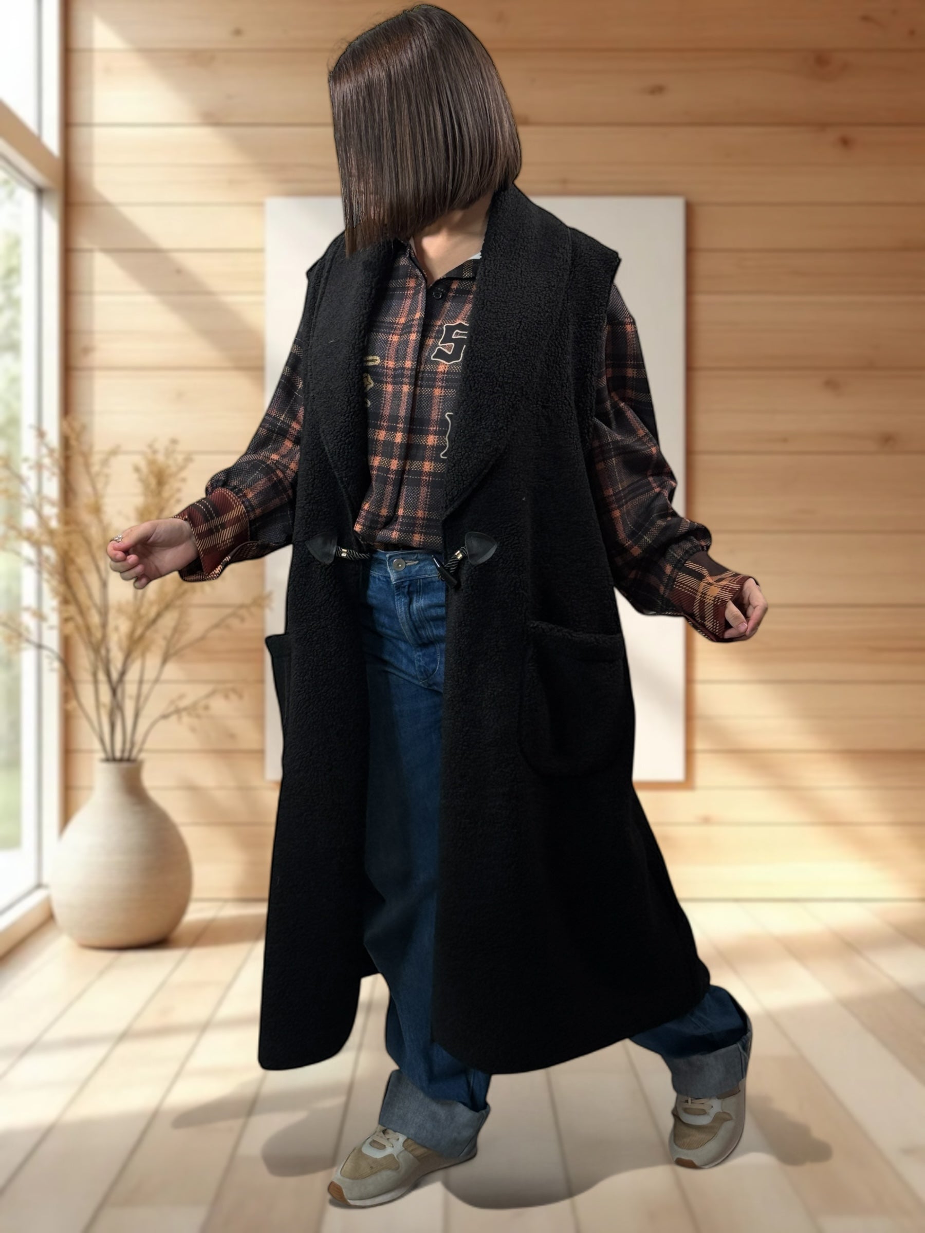 MAUD - GILET NOIR SANS MANCHES JUSQU'A LA TAILLE 54/56