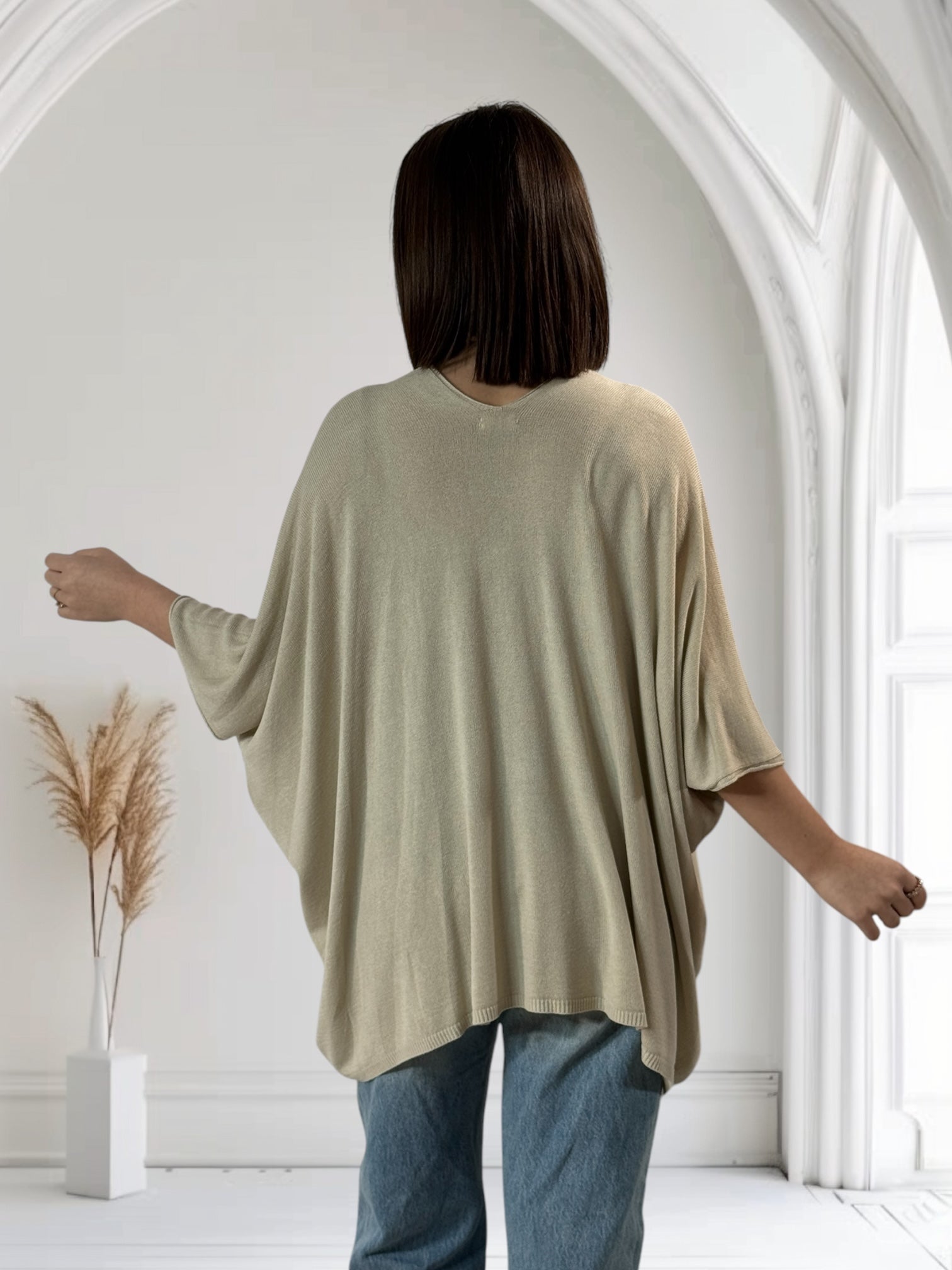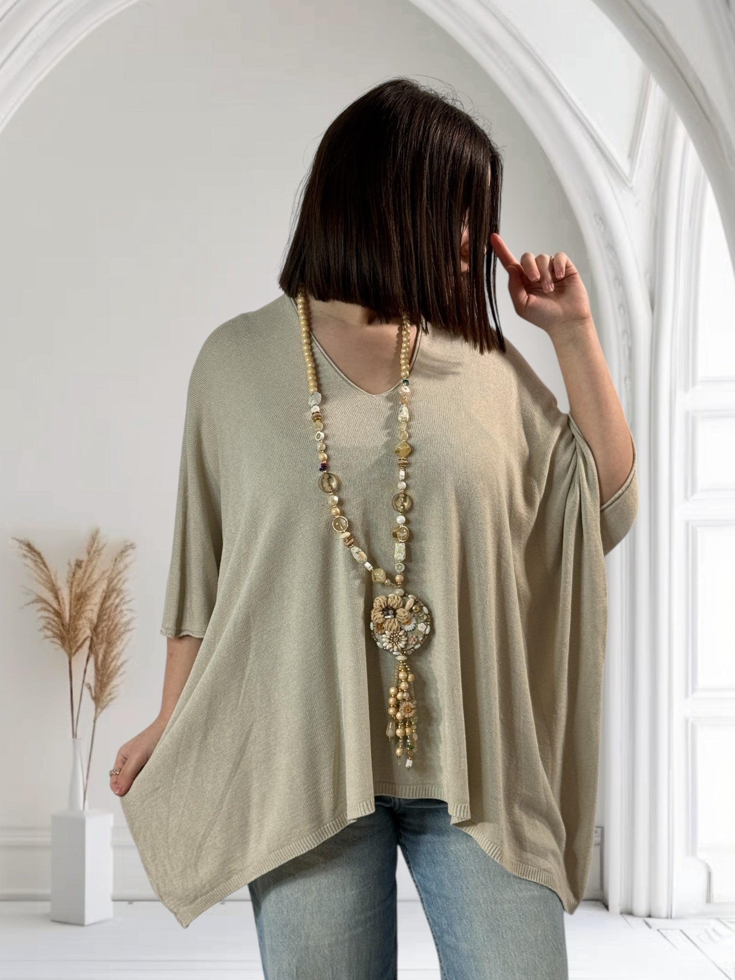 MERINGUE - PULL BEIGE EN MAILLE FLUIDE JUSQU'A LA TAILLE 56/58
