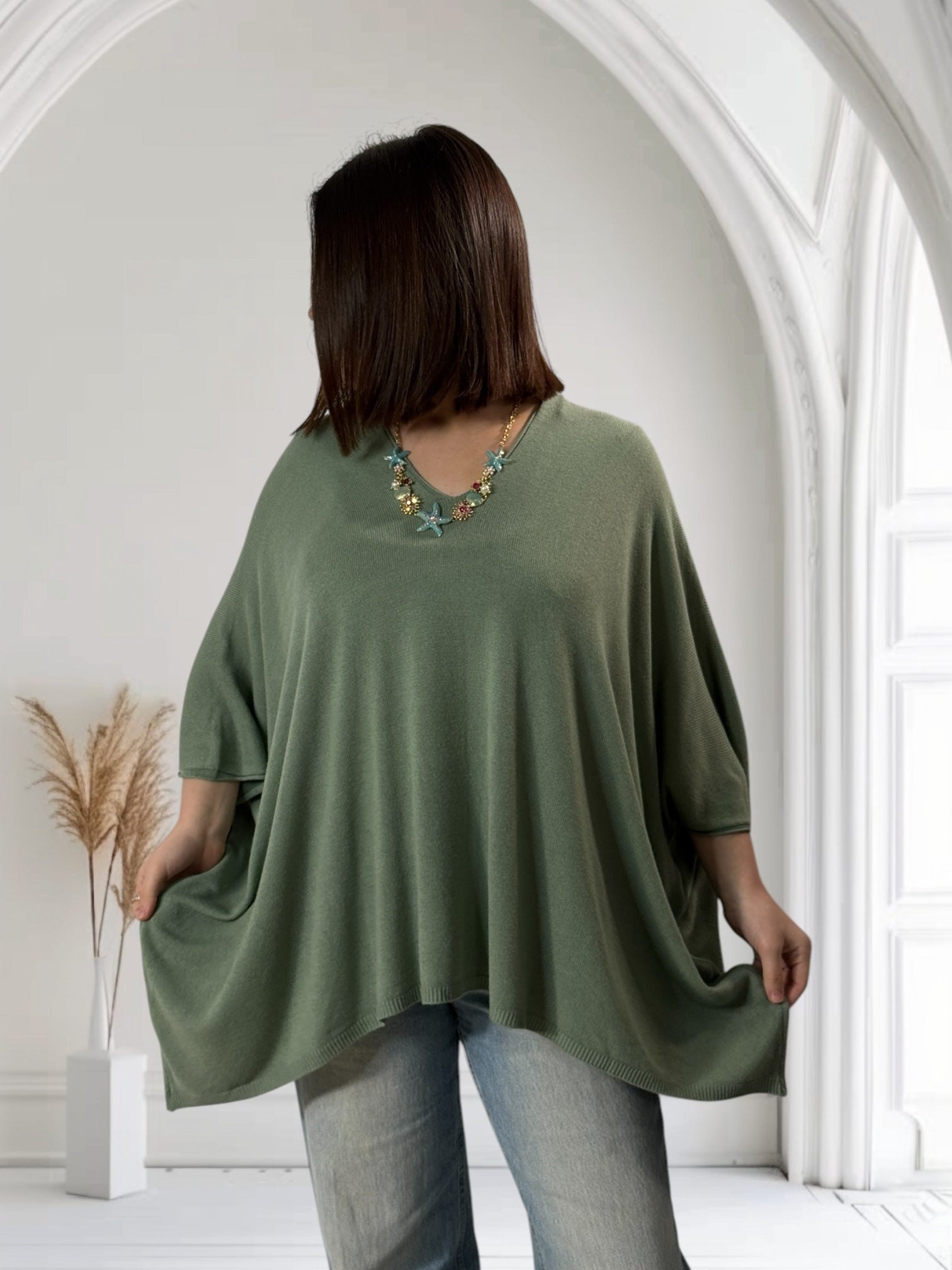 MERINGUE - PULL KAKI EN MAILLE FLUIDE JUSQU'A LA TAILLE 56/58
