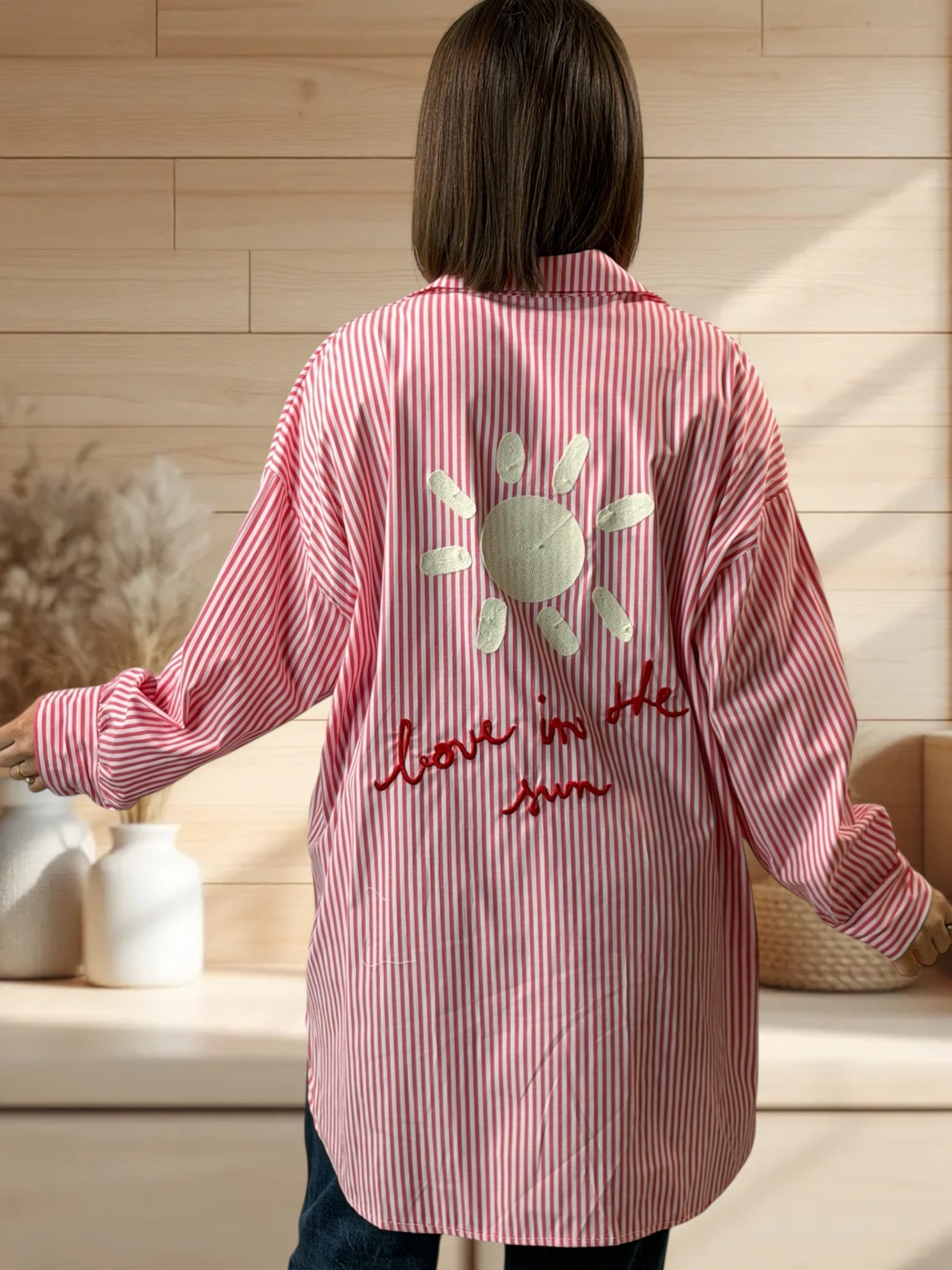NATALIA - CHEMISE OVERSIZE A RAYURE BRODERIE AU DOS JUSQU'A LA TAILLE 52