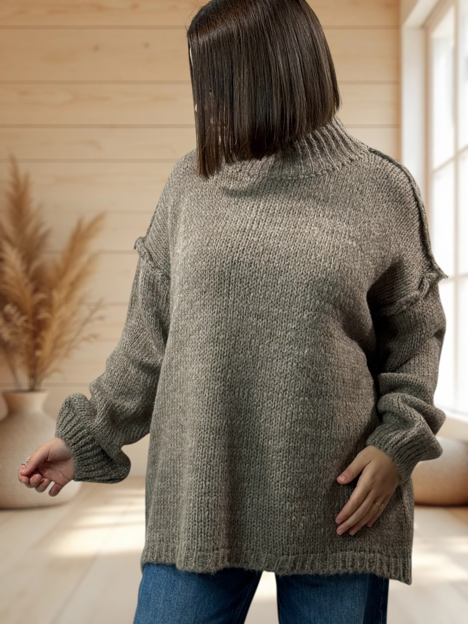 NATHY - PULL OVERSIZE TAUPE JUSQU'A LA TAILLE 54