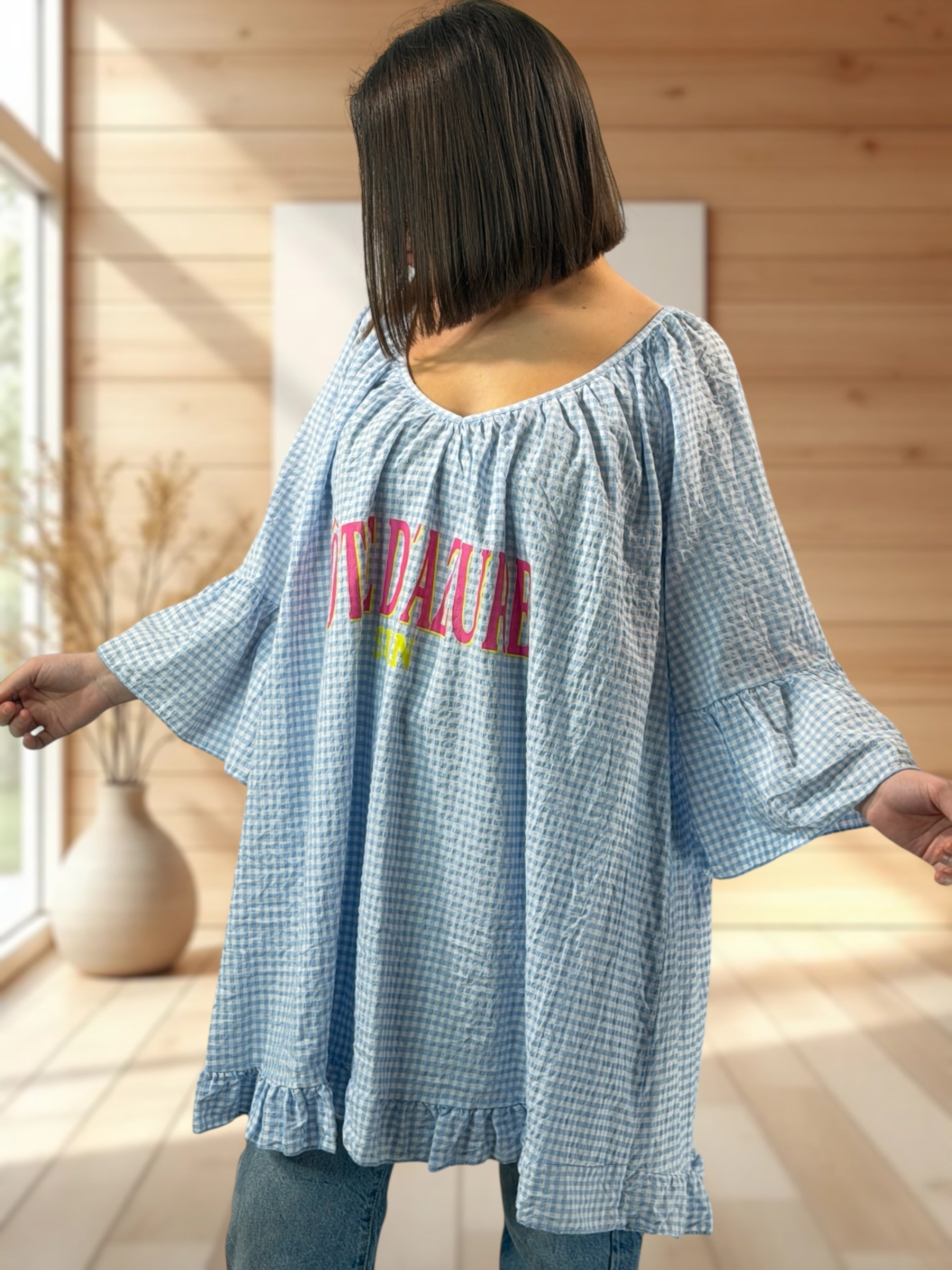 NICE - TUNIQUE VICHY BLEU CIEL JUSQU'A LA TAILLE 54